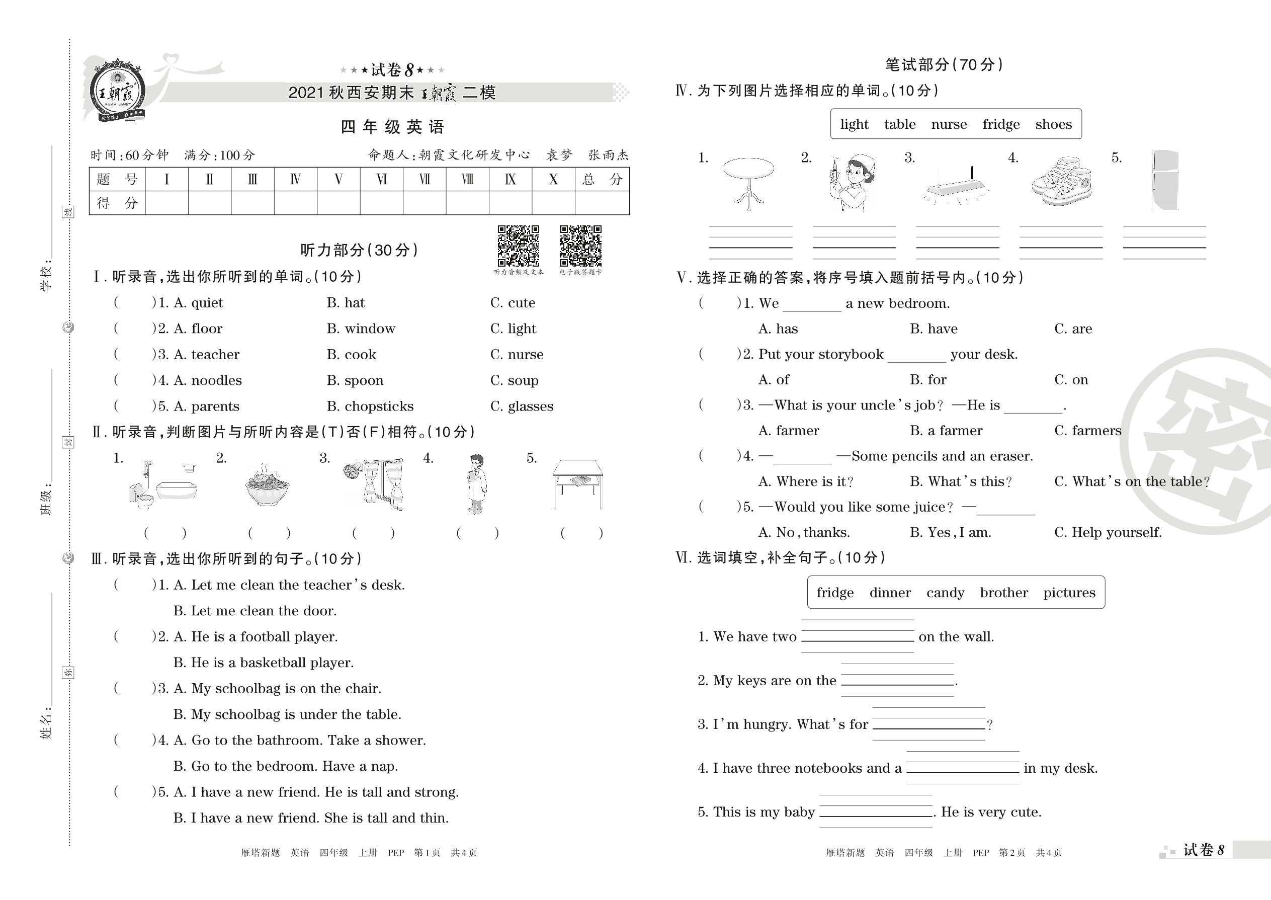 王朝霞期末模拟卷四年级上册英语(人教PEP版)_R211223092539347【8】