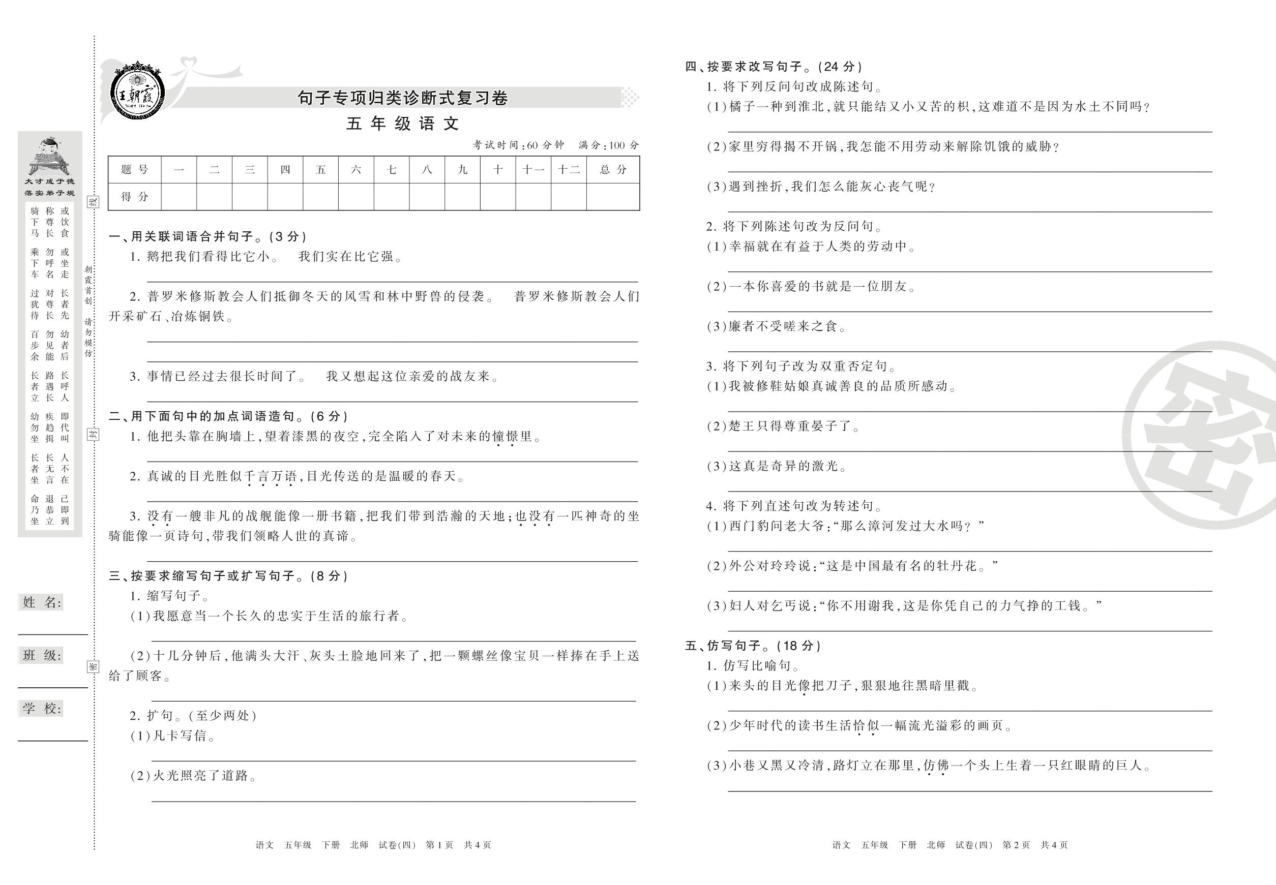 王朝霞期末专项卷五年级下册语文(北师版)_R210801212842【4】