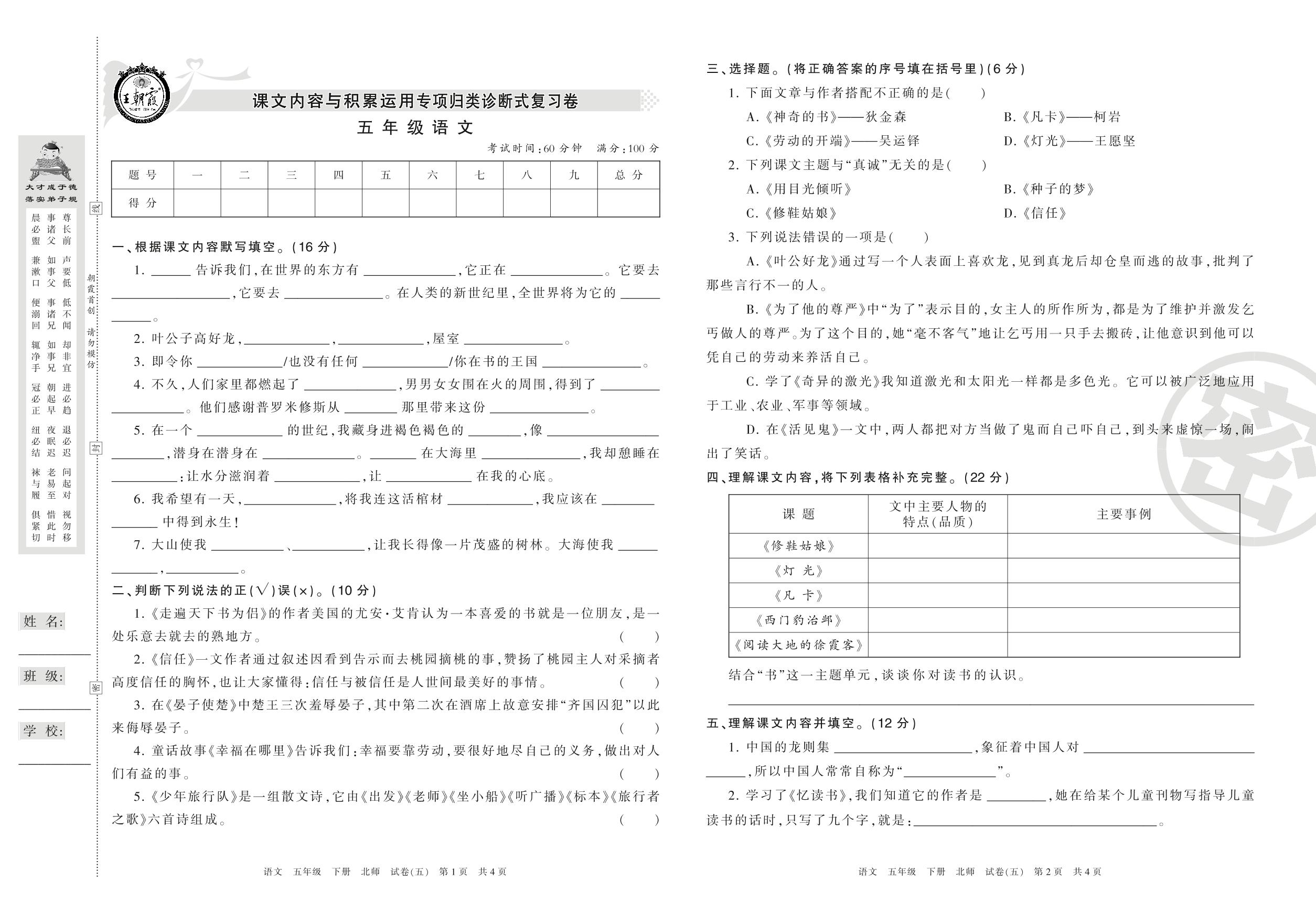 王朝霞期末专项卷五年级下册语文(北师版)_R210801212848【5】