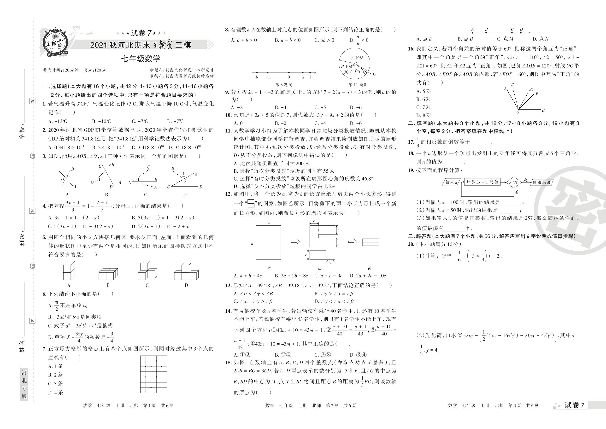 王朝霞期末模拟卷七年级上册数学(北师版)【7】