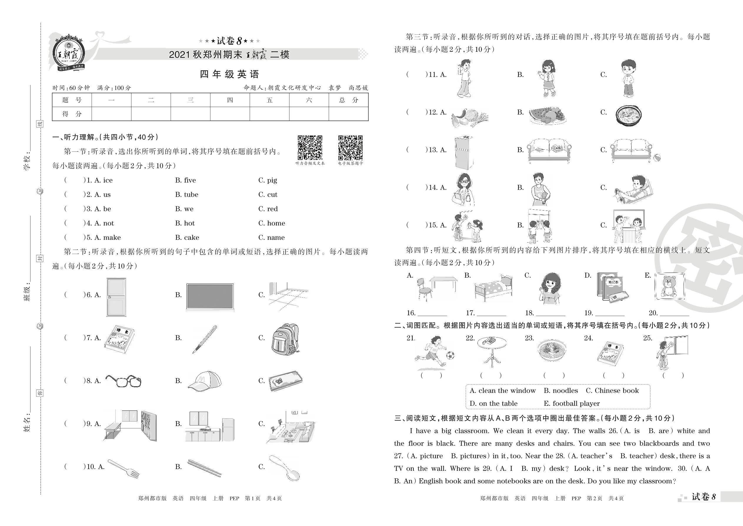 王朝霞期末模拟卷四年级上册英语(人教PEP版)_R211223092629285【8】