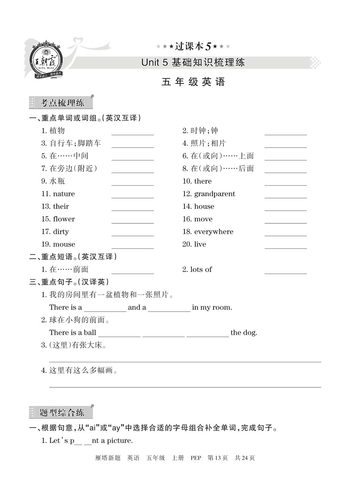 王朝霞期末过课本——Unit 5基础知识梳理练五年级上册英语(人教PEP版)_R211223093338344【5】