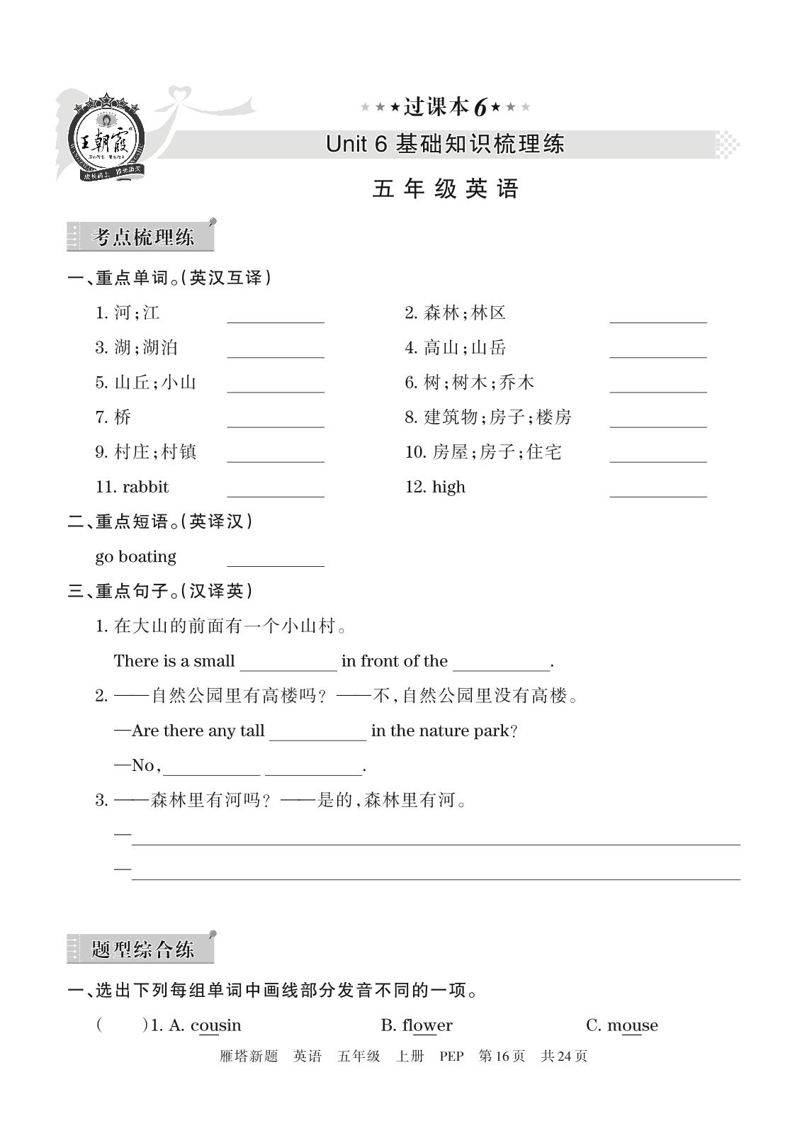 王朝霞期末过课本——Unit 6基础知识梳理练五年级上册英语(人教PEP版)_R211223093338555【6】