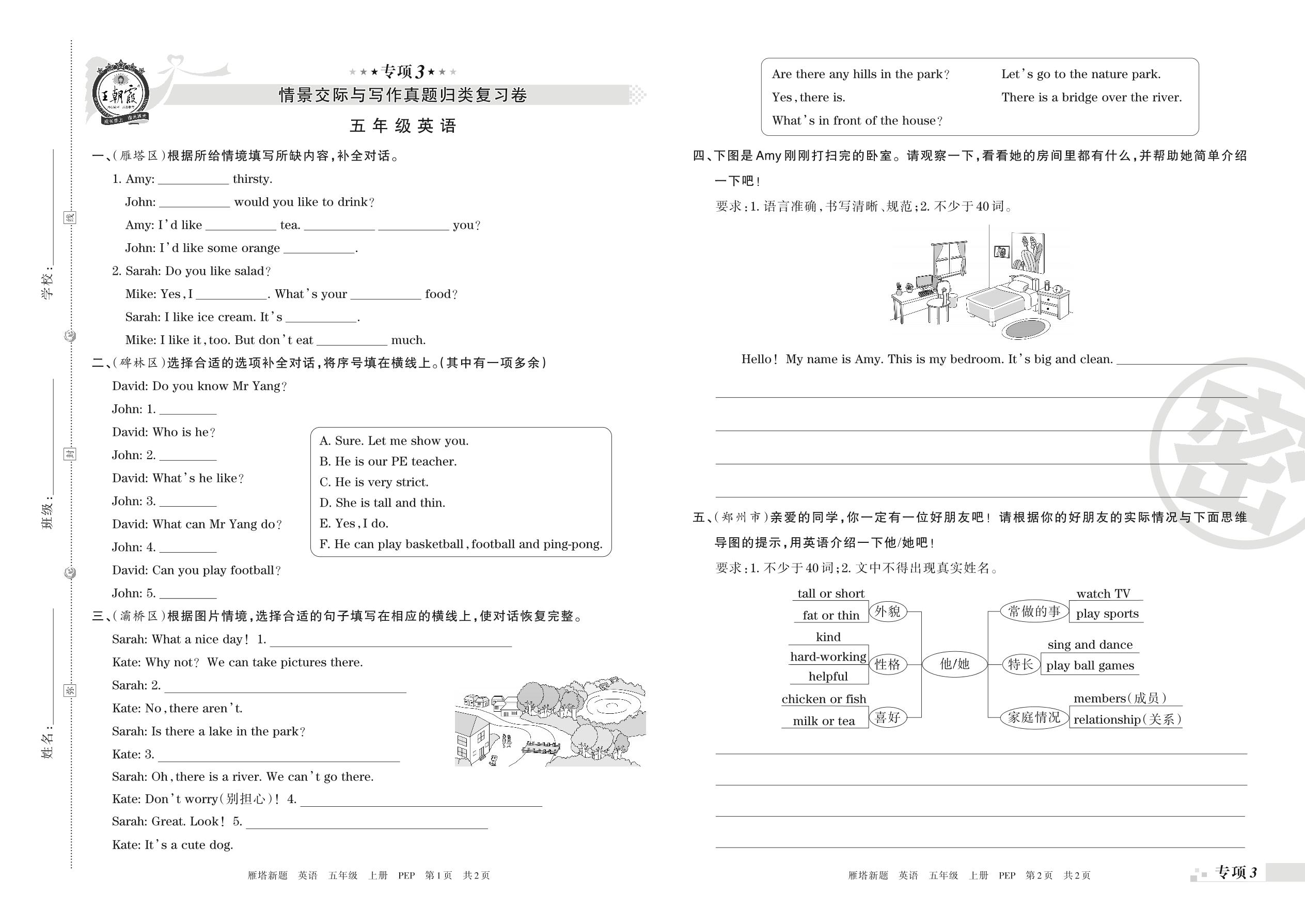 王朝霞期末专项卷——情景交际与写作真题归类复习卷五年级上册英语(人教PEP版)_R211223093338818【3】