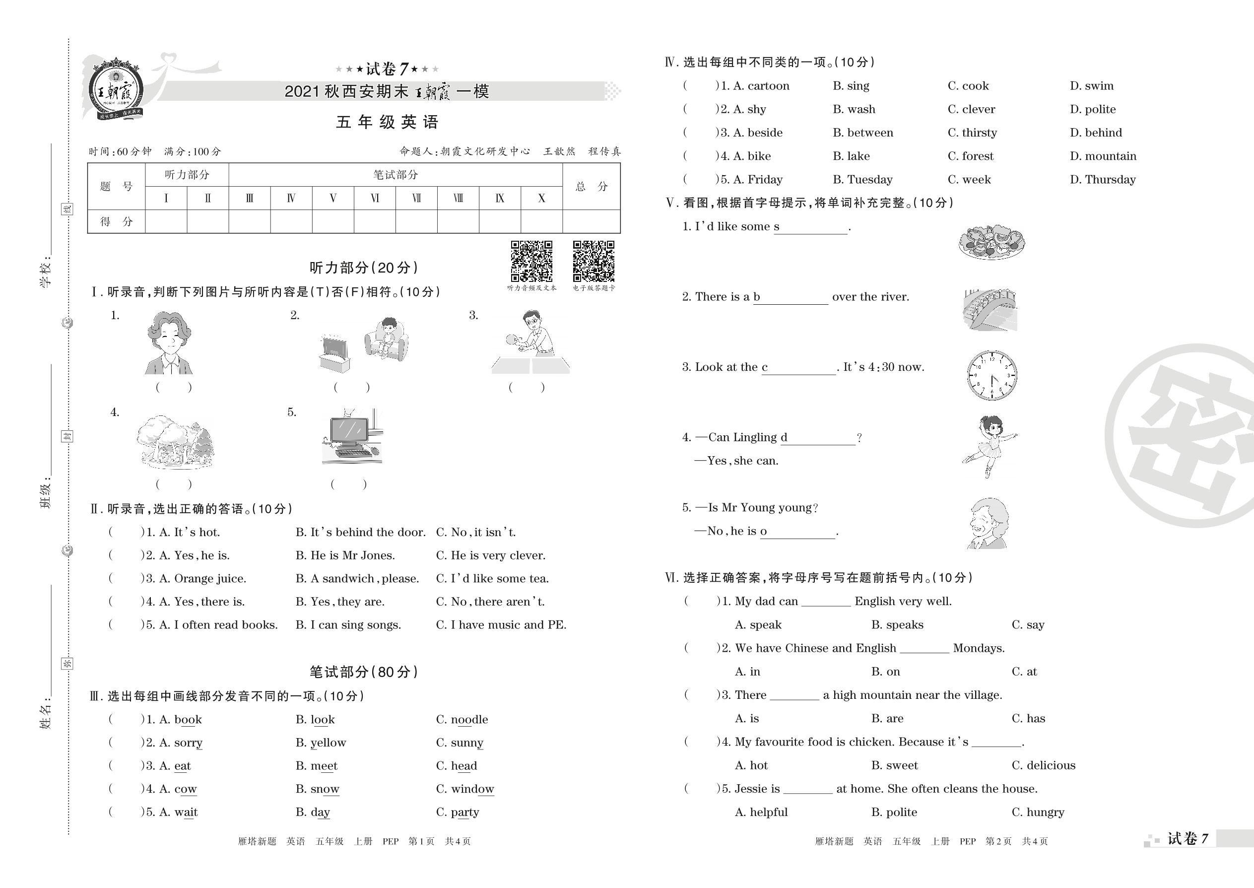 王朝霞期末模拟卷五年级上册英语(人教PEP版)_R211223093338993【7】