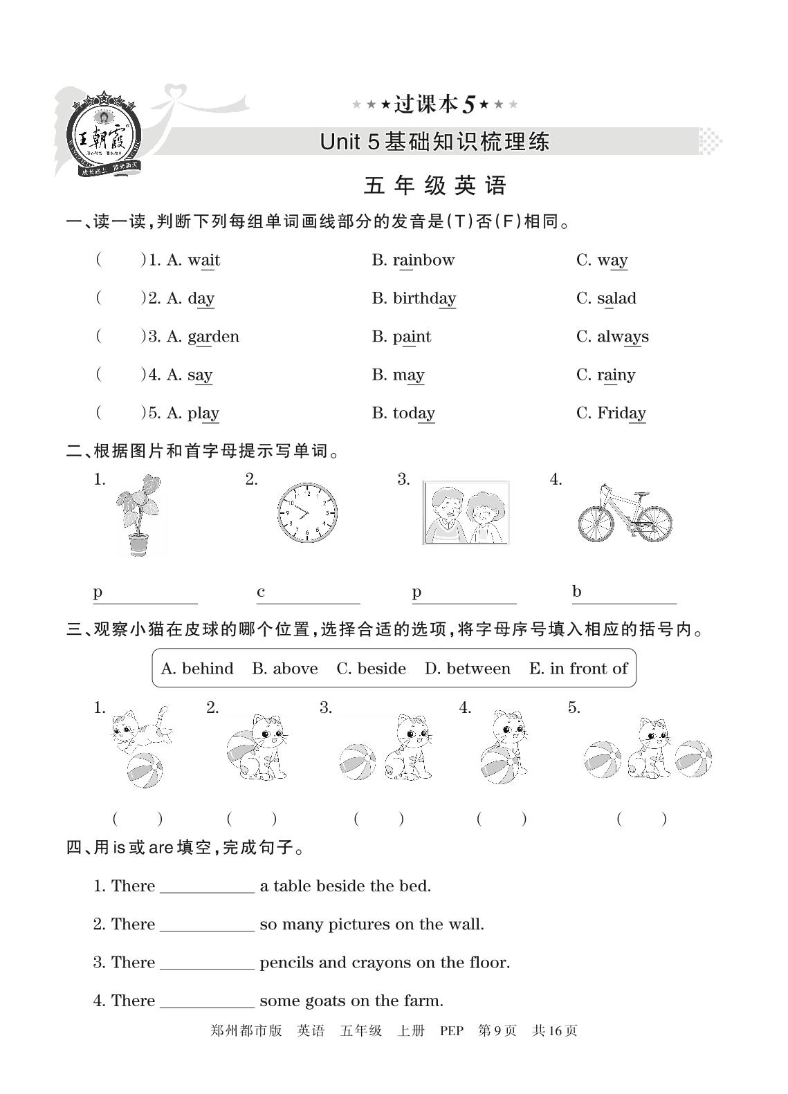 王朝霞期末过课本——Unit 5基础知识梳理练五年级上册英语(人教PEP版)_R211223093558197【5】