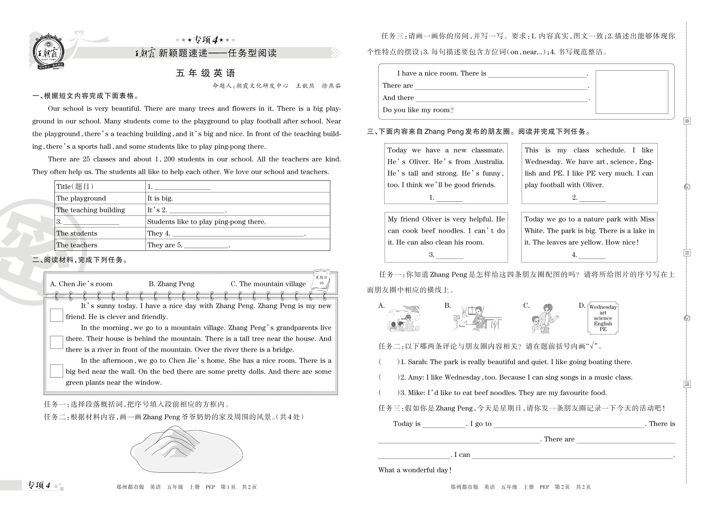 王朝霞期末专项卷——新颖题速递:任务型阅读五年级上册英语(人教PEP版)_R211223093558683【4】