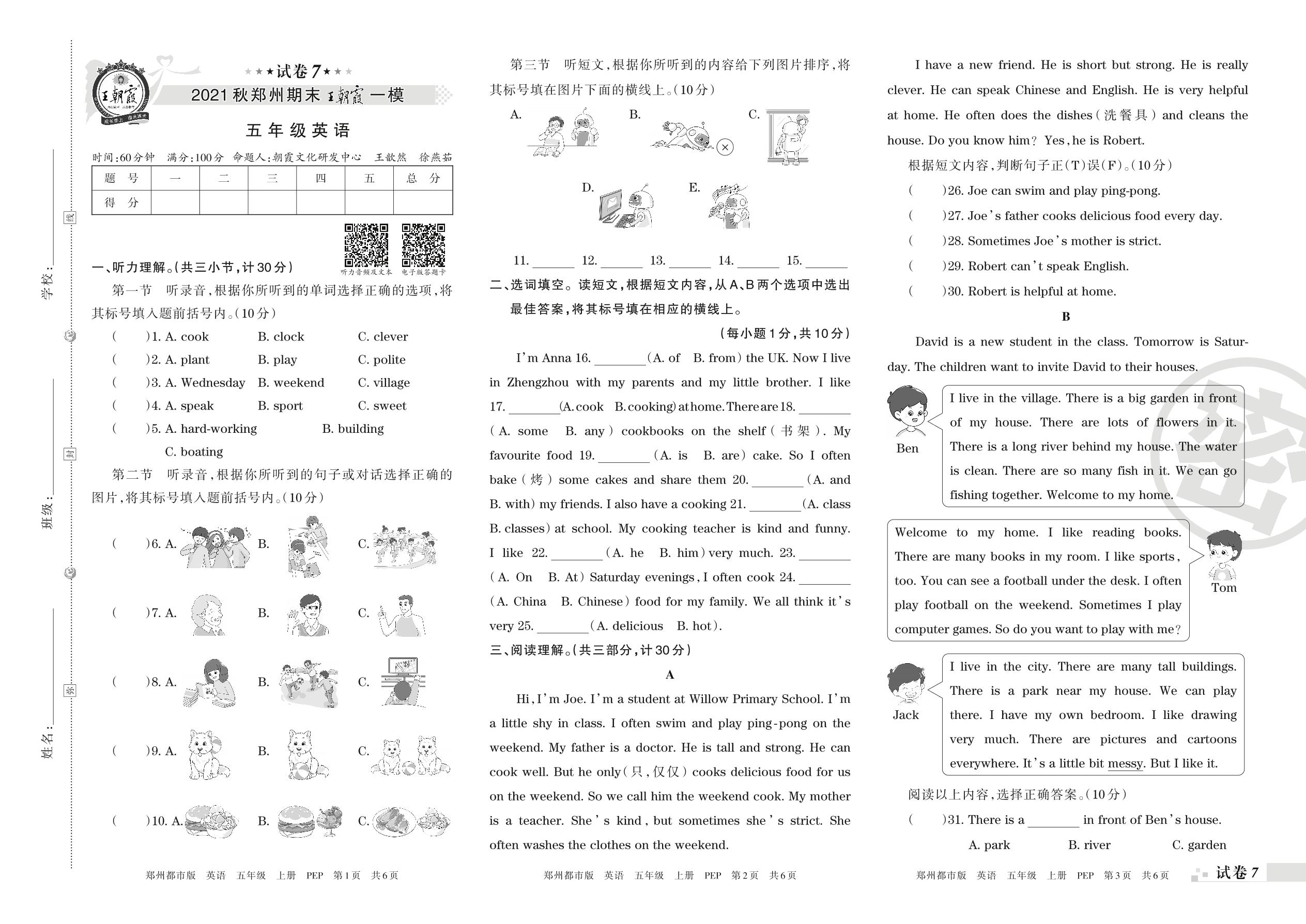 王朝霞期末模拟卷五年级上册英语(人教PEP版)_R211223093558782【7】