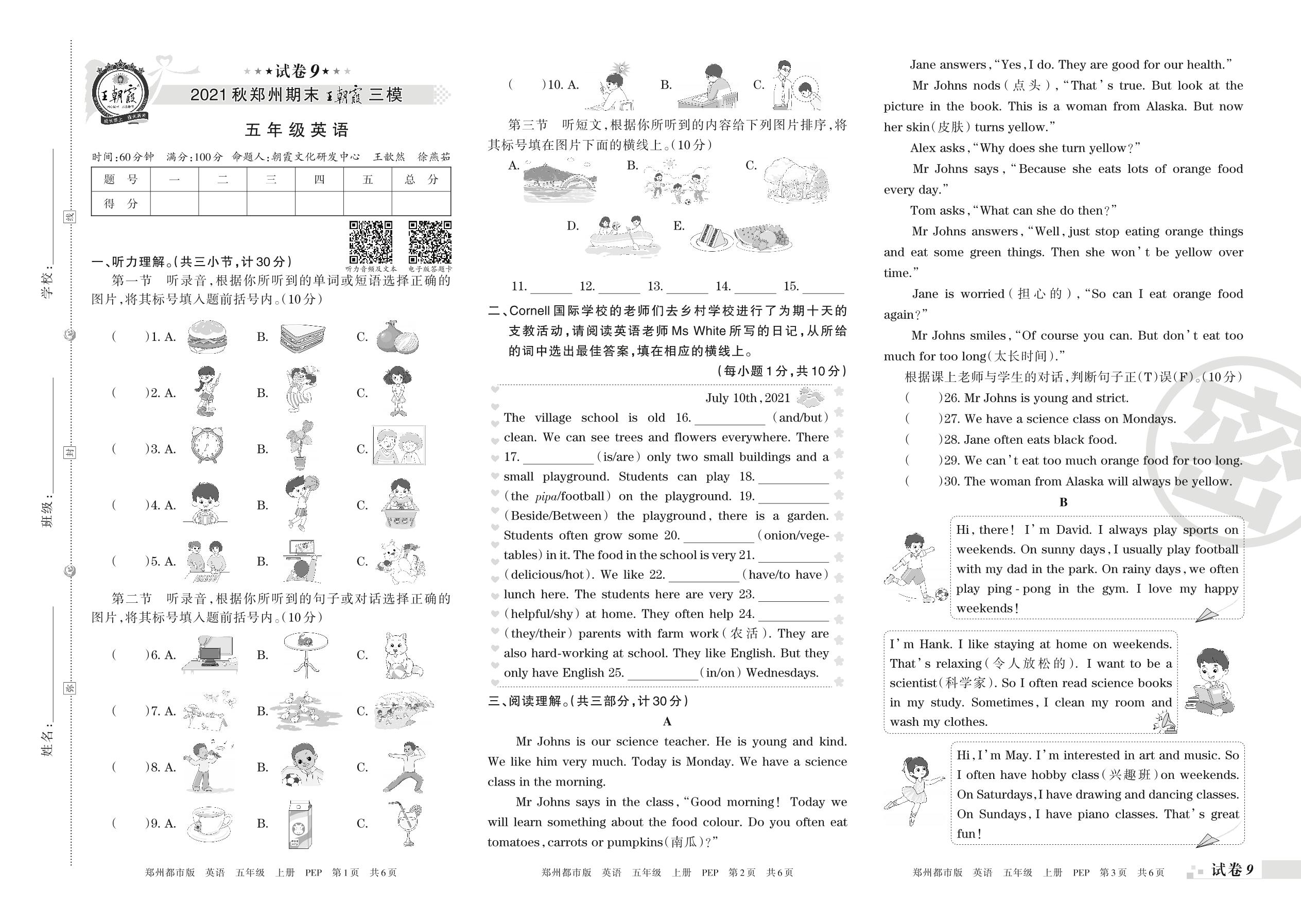 王朝霞期末模拟卷五年级上册英语(人教PEP版)_R211223093559155【9】
