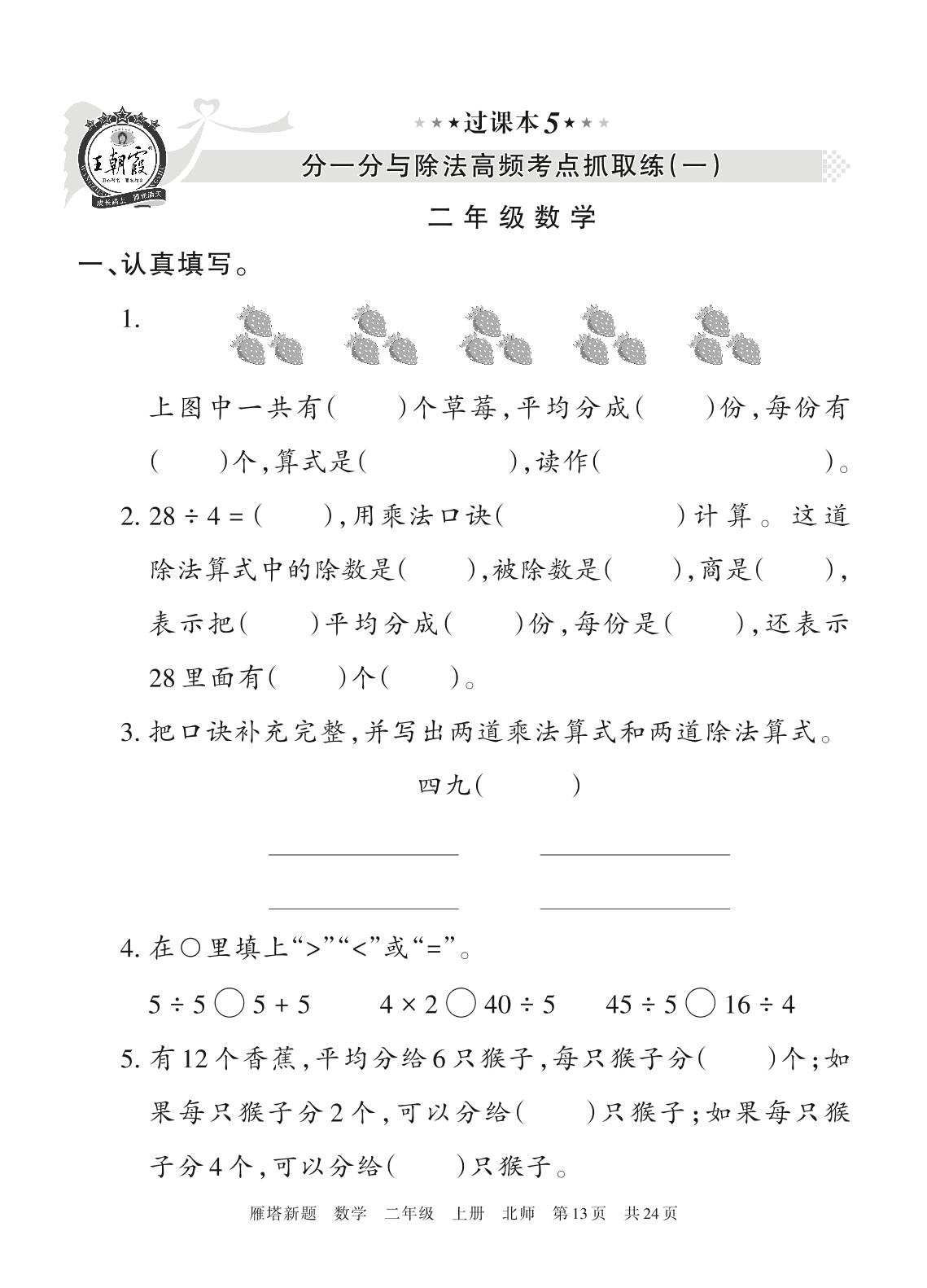 王朝霞期末过课本——分一分与除法高频考点抓取练(一)二年级上册数学(北师版)_R211223093754182【5】