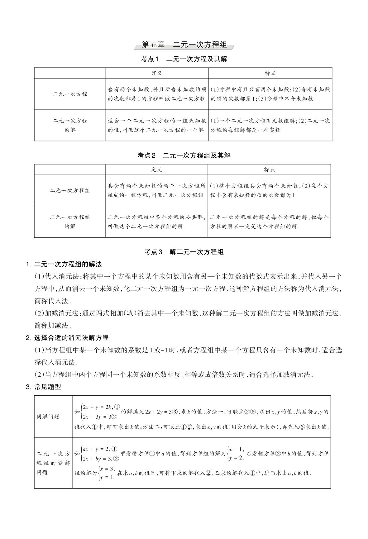 王朝霞期末知识梳理——第五章 二元一次方程八年级上册数学(北师版)【5】