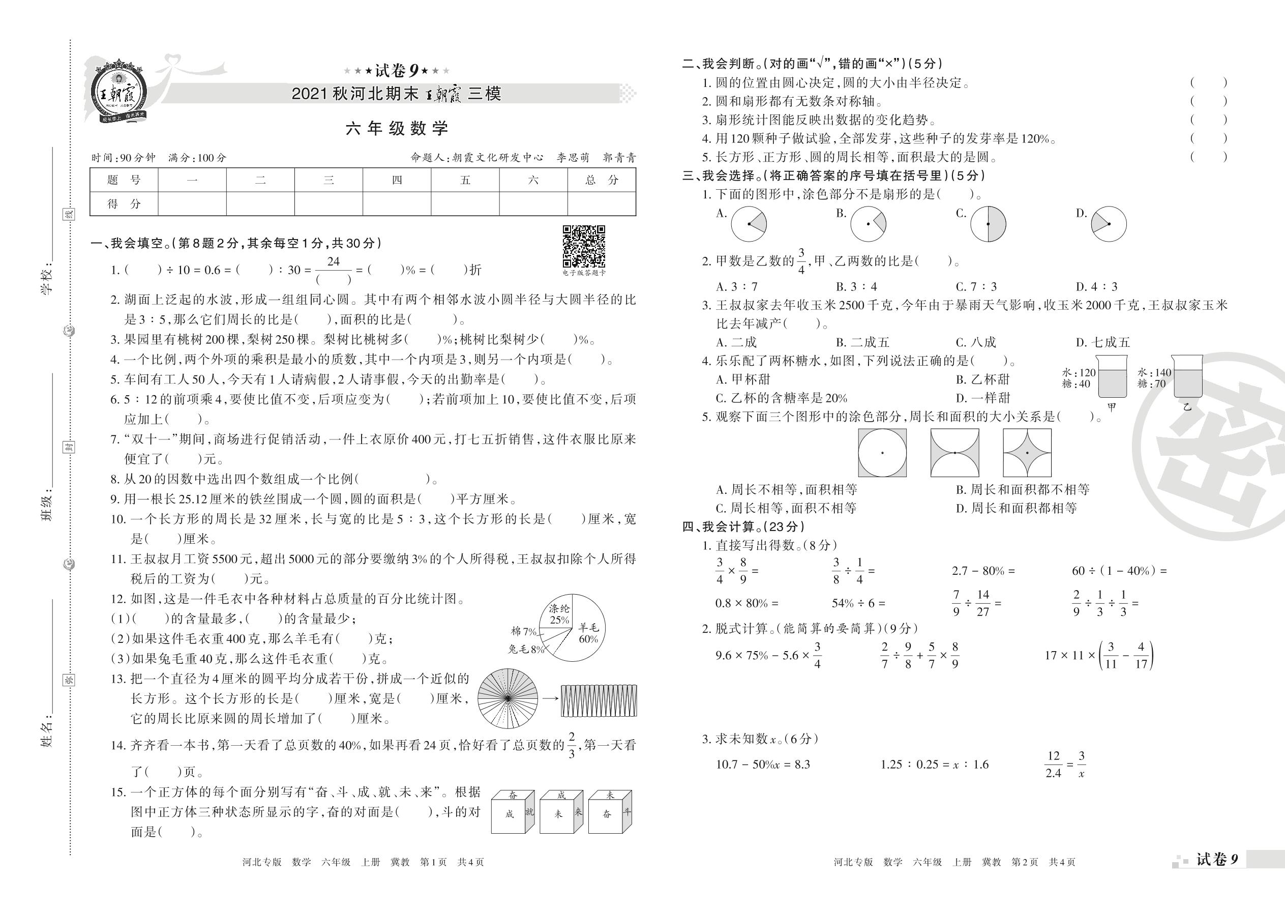王朝霞期末模拟卷六年级上册数学(冀教版)_R211223095534790【9】