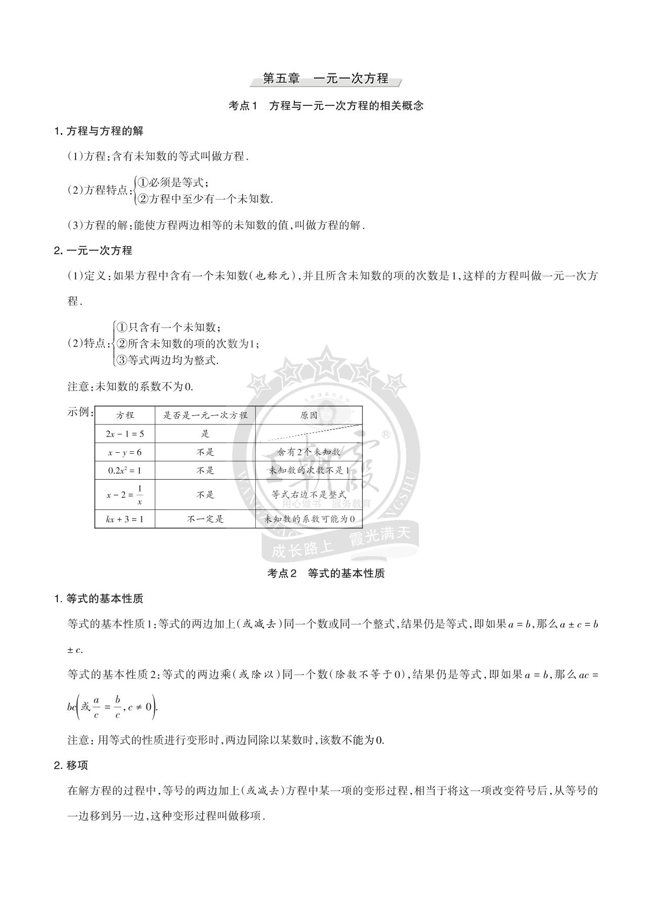 王朝霞期末知识梳理——第五章 一元一次方程七年级上册数学(冀教版)【5】