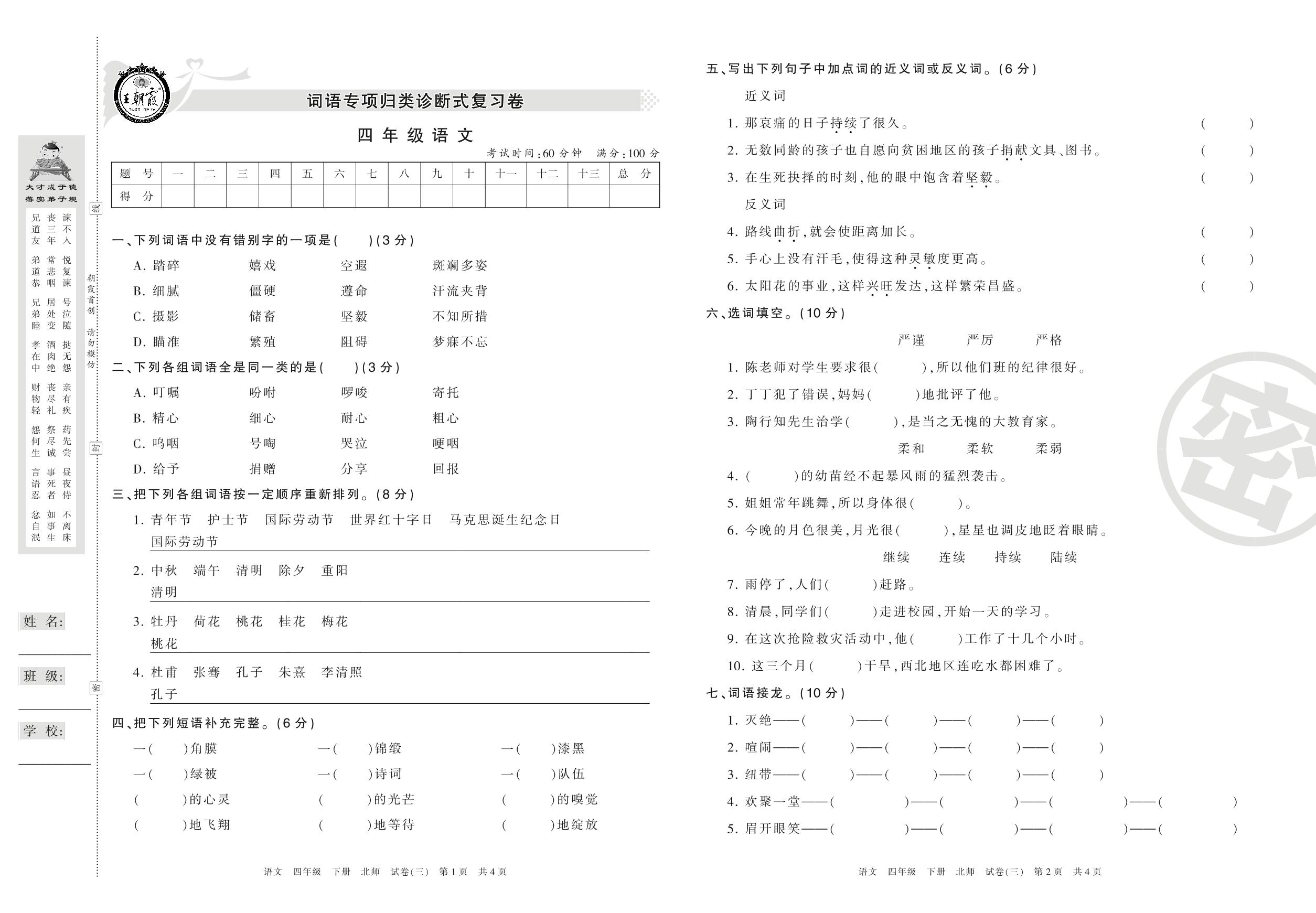 王朝霞期末专项卷四年级下册语文(北师版)_R210801213032【3】