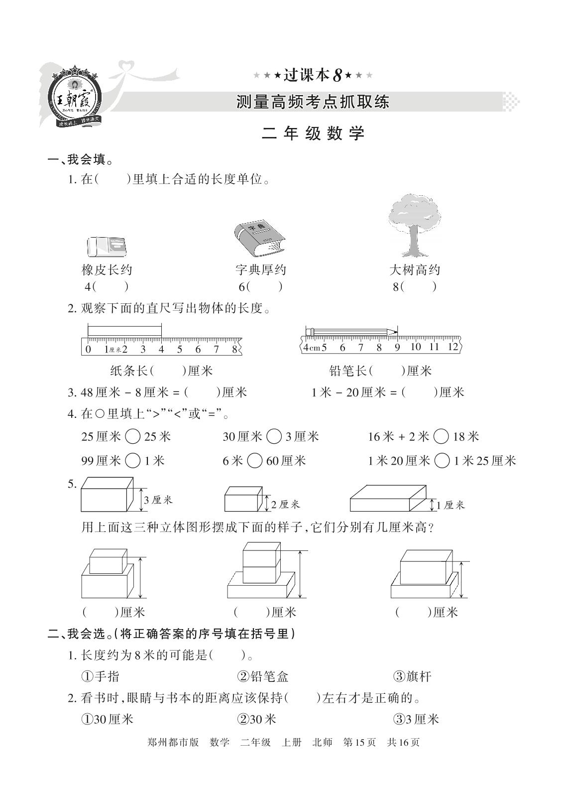 王朝霞期末过课本——测量高频考点抓取练二年级上册数学(北师版)_R211223100122364【8】
