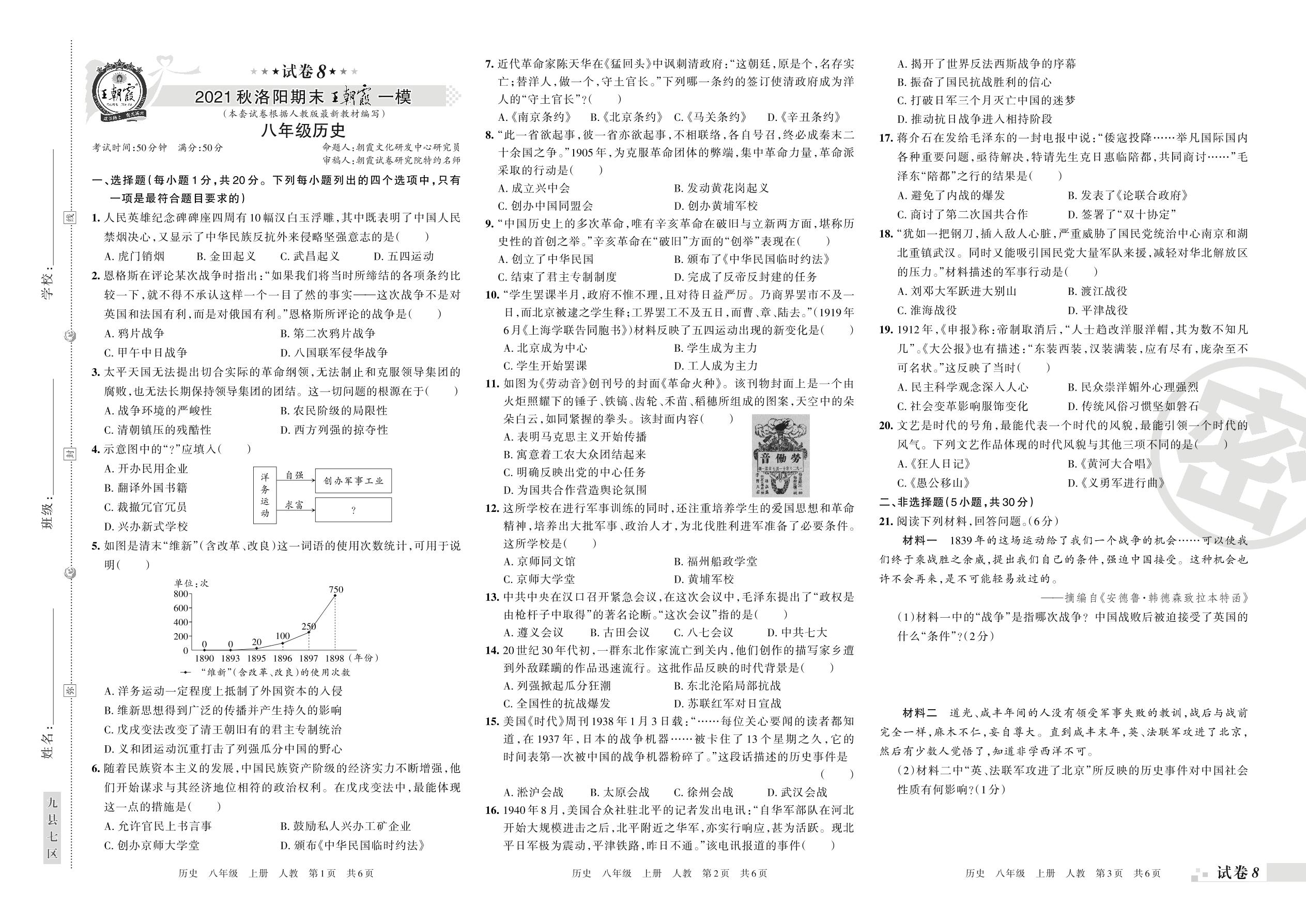 王朝霞期末模拟卷八年级上册历史(人教版)_R211223100238137【8】