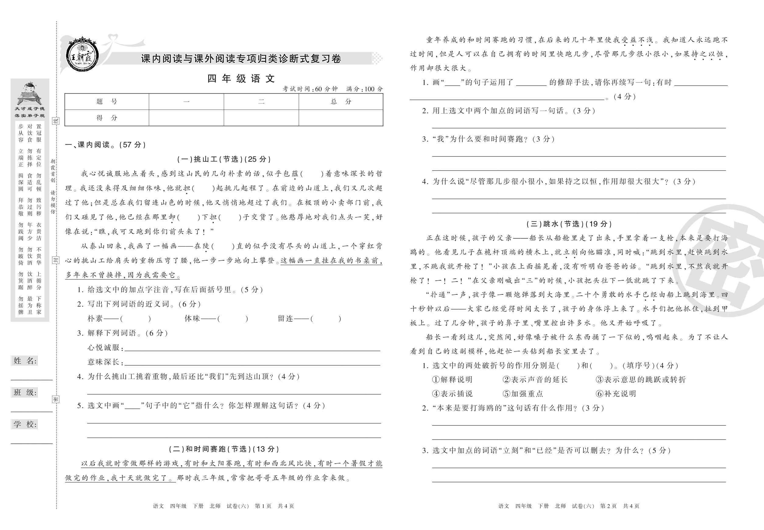王朝霞期末专项卷四年级下册语文(北师版)【6】