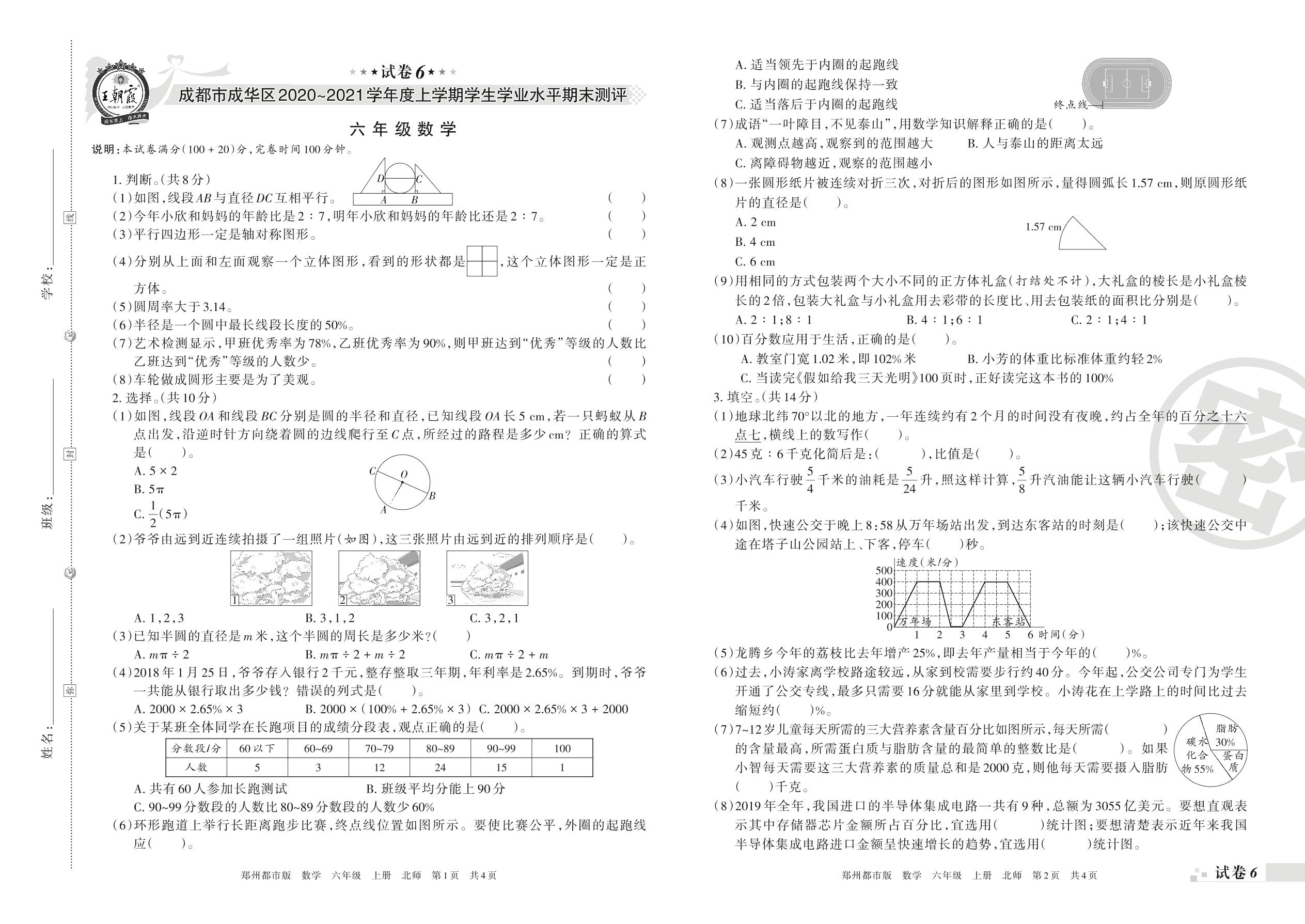 成都市成华区2020~2021学年度上学期学生学业水平期末测评六年级数学(北师版)【6】