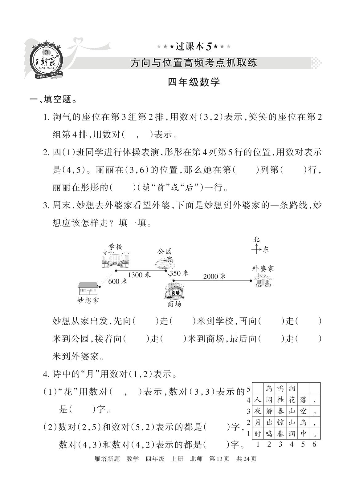 王朝霞期末过课本——方向与位置高频考点抓取练四年级上册数学(北师版)【5】