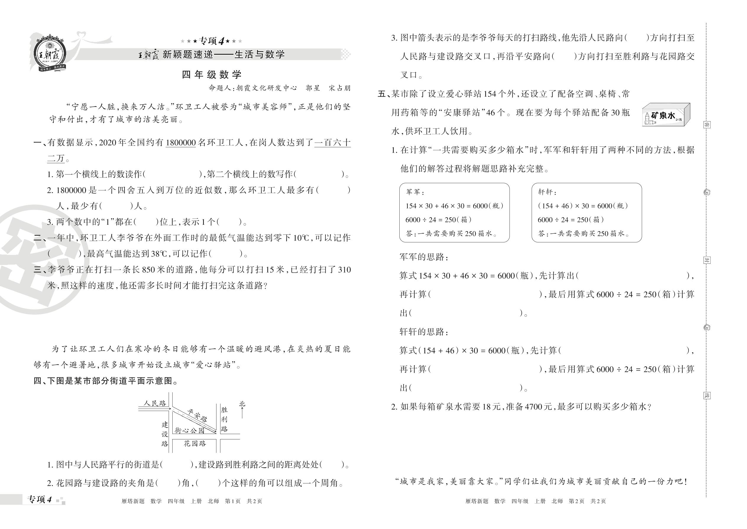 王朝霞期末专项卷——新颖题速递:生活与数学四年级上册数学(北师版)【4】