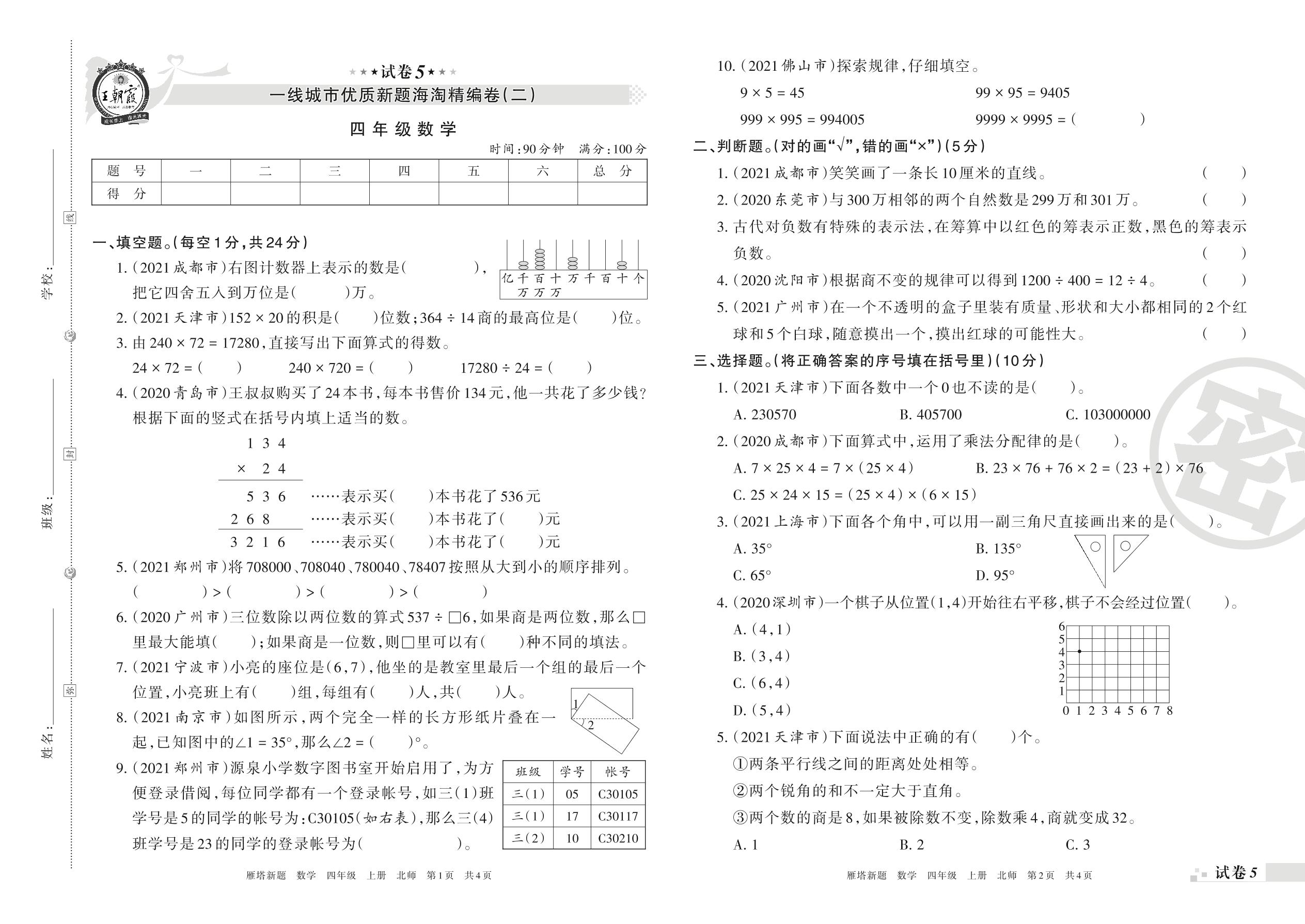 一线城市优质新题海淘精编卷(二)四年级上册数学(北师版)【5】