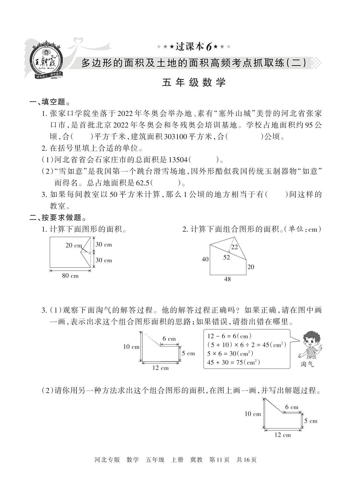 王朝霞期末过课本——多边形的面积及土地的面积高频考点抓取练(二)五年级上册数学(冀教版)【6】