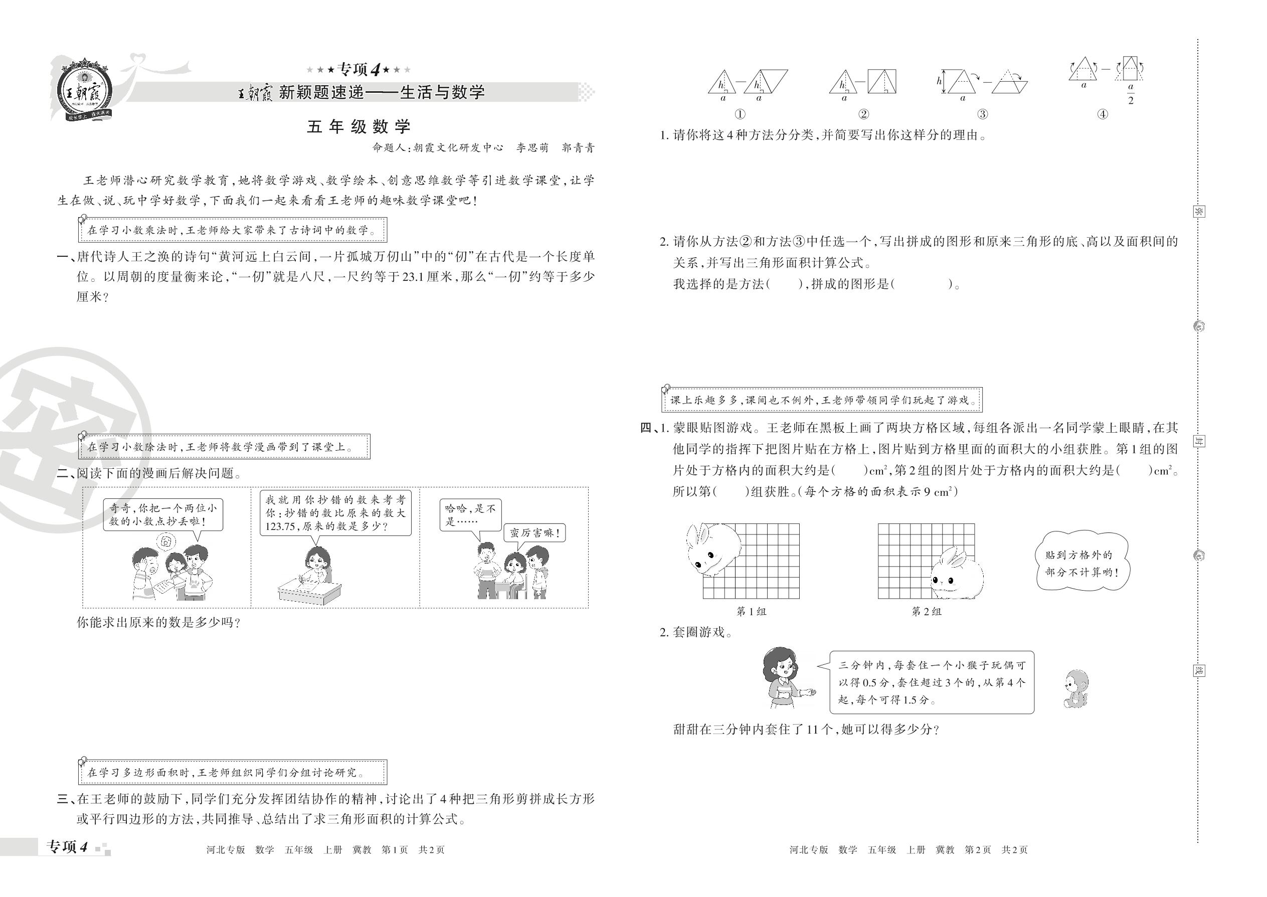 王朝霞期末专项卷——新颖题速递:生活与数学五年级上册数学(冀教版)【4】