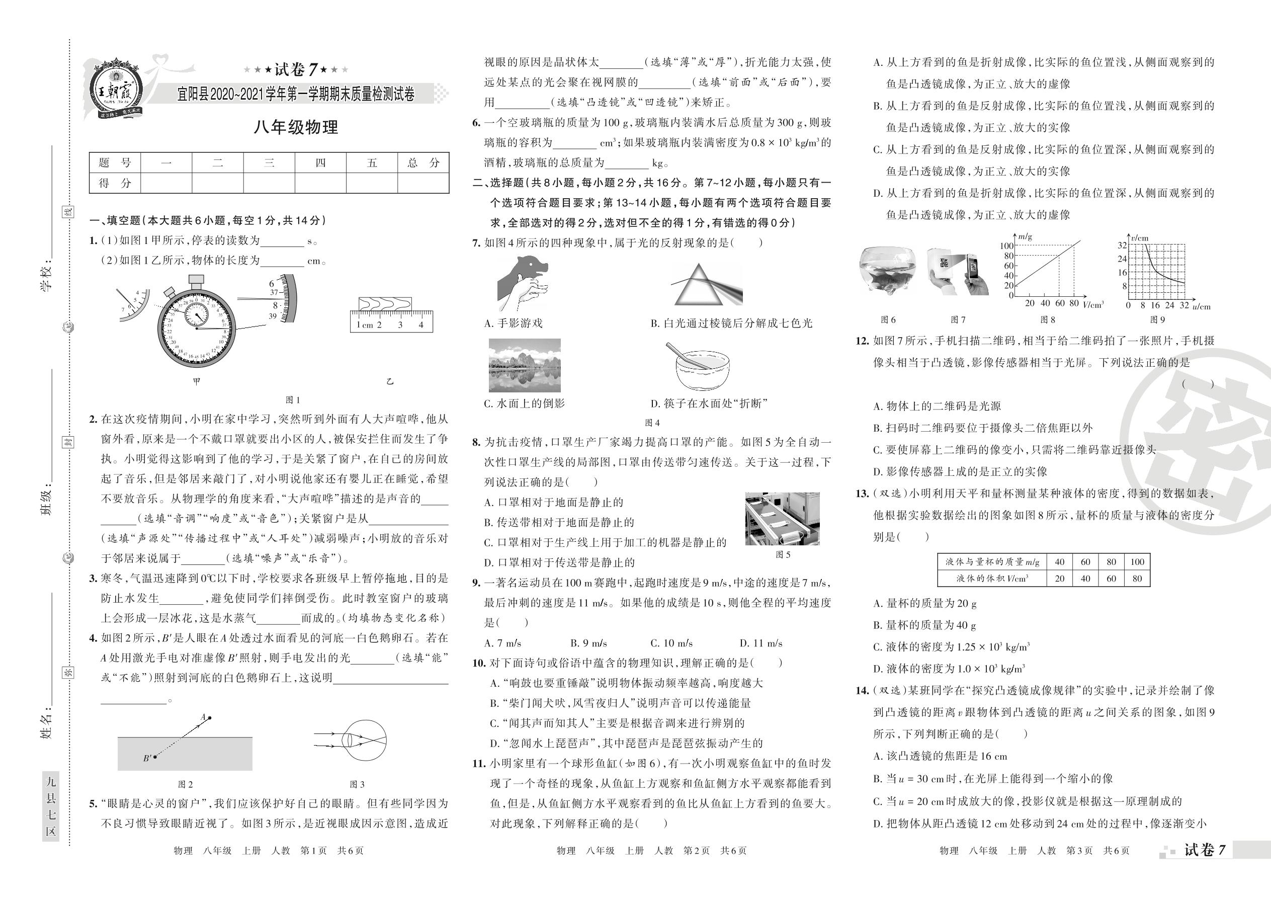 宜阳县2020~2021学年第一学期期末质量检测试卷八年级物理(人教版)【7】