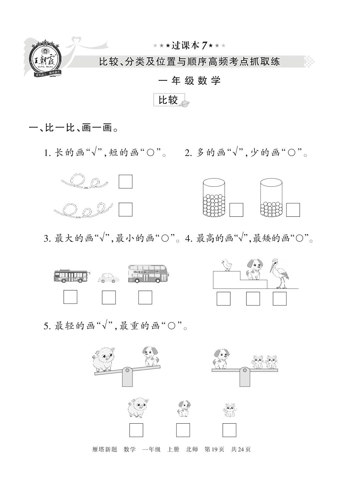 王朝霞期末过课本——比较、分类及位置与顺序高频考点抓取练一年级上册数学(北师版)【7】
