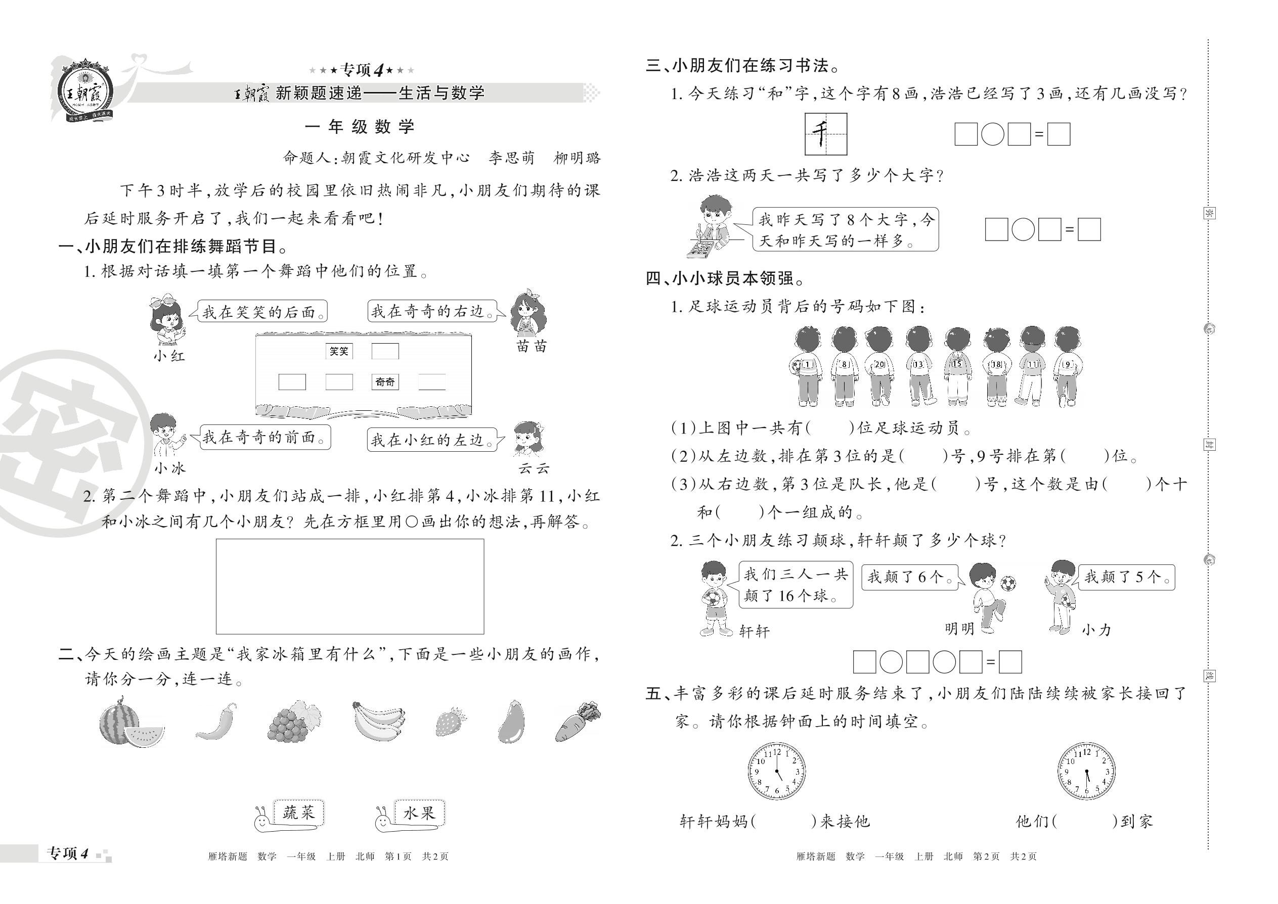 王朝霞期末专项卷——新颖题速递:生活与数学一年级上册数学(北师版)【4】