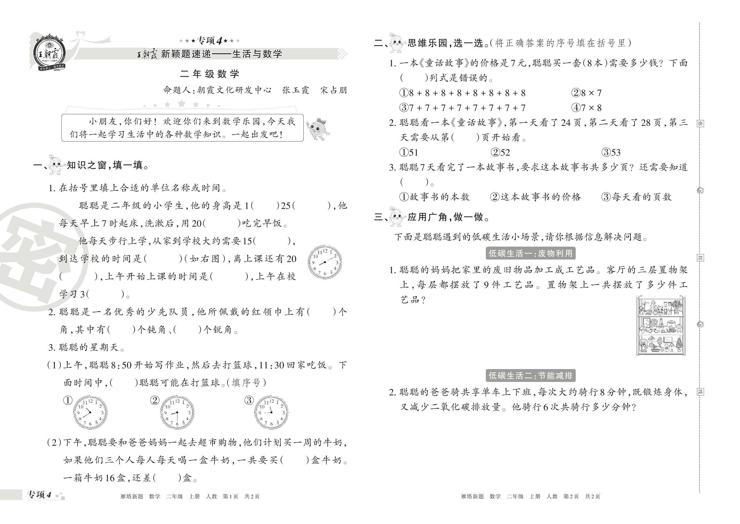 王朝霞期末专项卷——新颖题速递:生活与数学二年级上册数学(人教版)_R211223102549778【4】