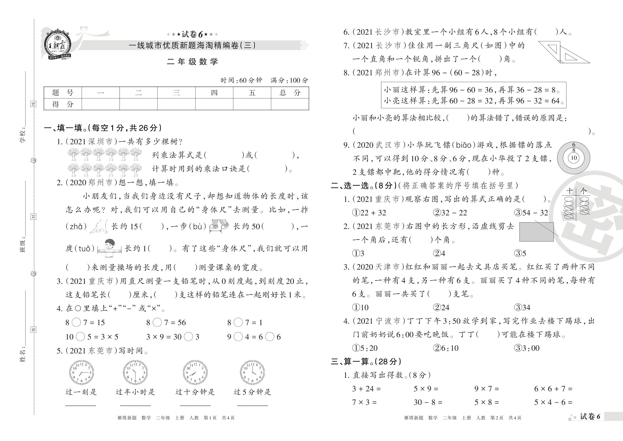 一线城市优质新题海淘精编卷(三)二年级上册数学(人教版)【6】