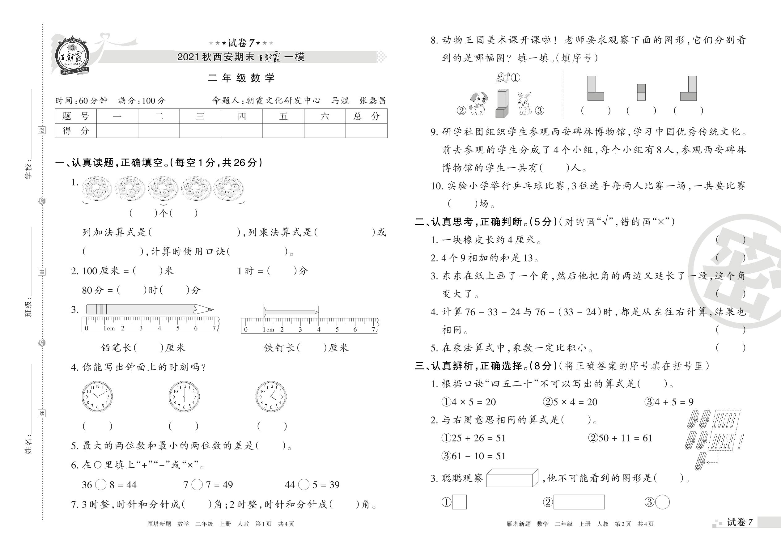 王朝霞期末模拟卷二年级上册数学(人教版)_R211223102550939【7】