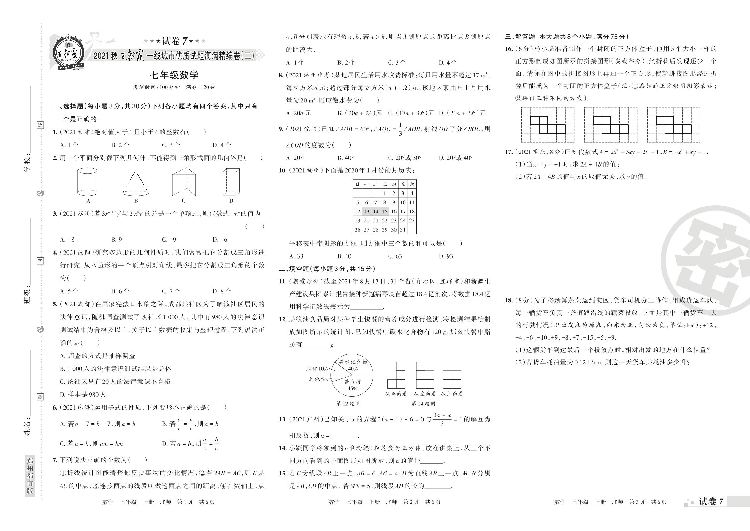 一线城市优质试题海淘精编卷(二)七年级上册数学(北师版)【7】