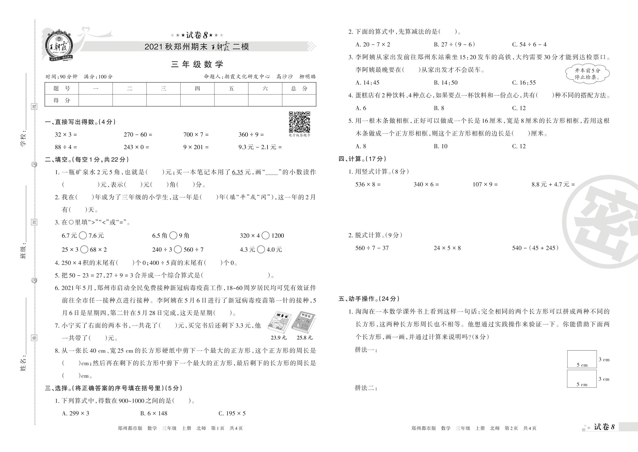王朝霞期末模拟卷三年级上册数学(北师版)_R211223103806180【8】
