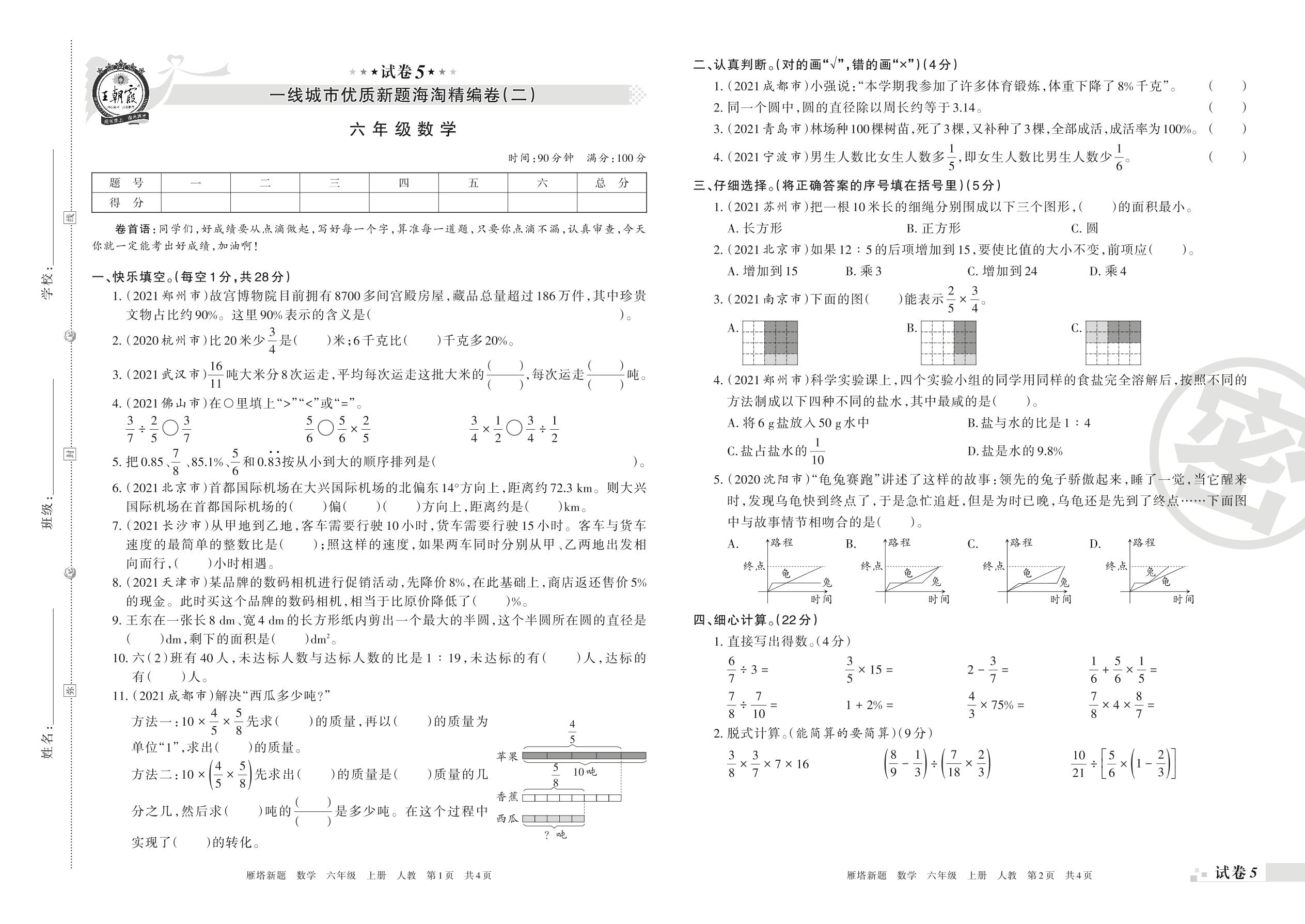 一线城市优质新题海淘精编卷(二)六年级上册数学(人教版)【5】