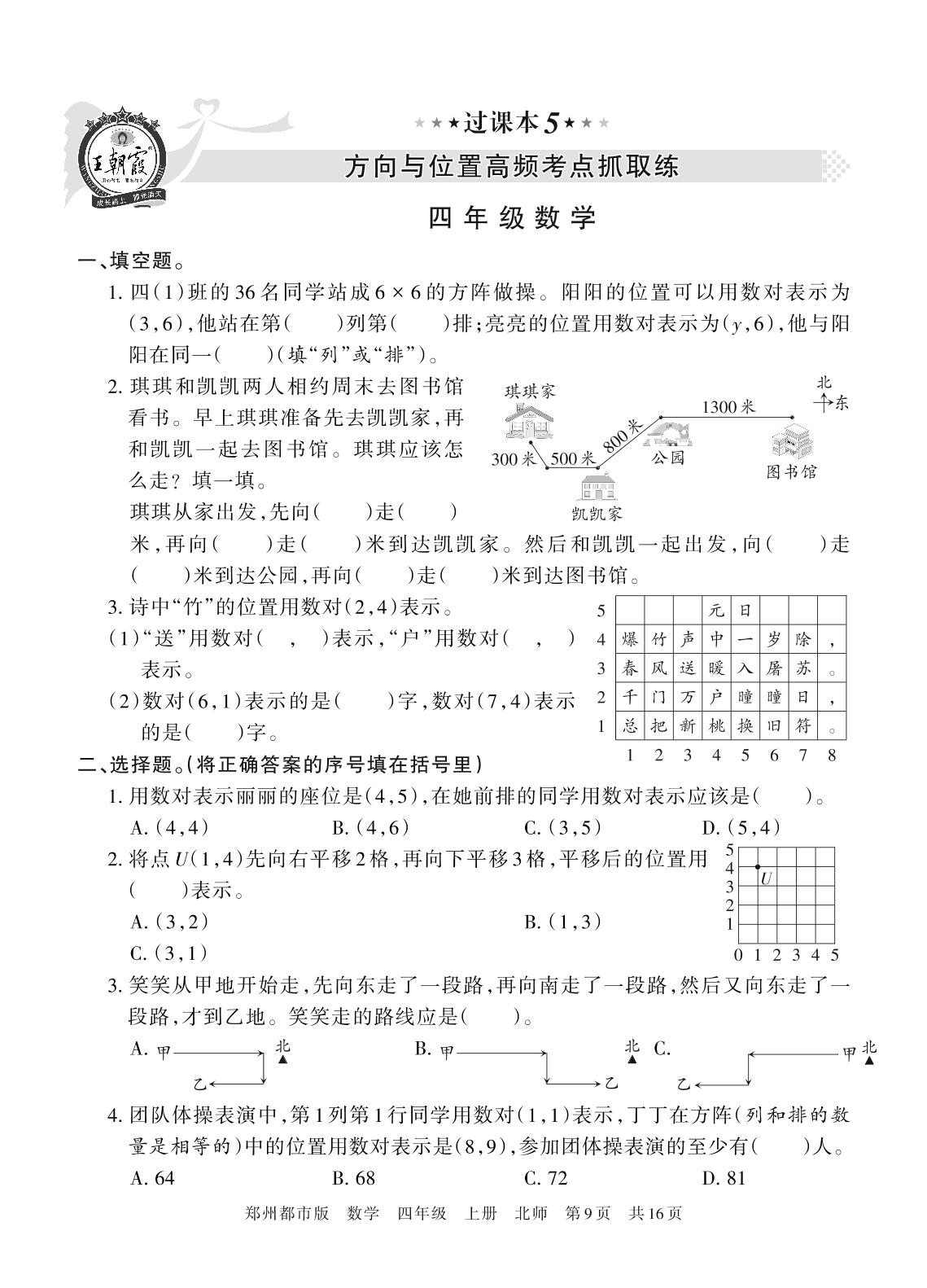 王朝霞期末过课本——方向与位置高频考点抓取练四年级上册数学(北师版)_R211223104350851【5】