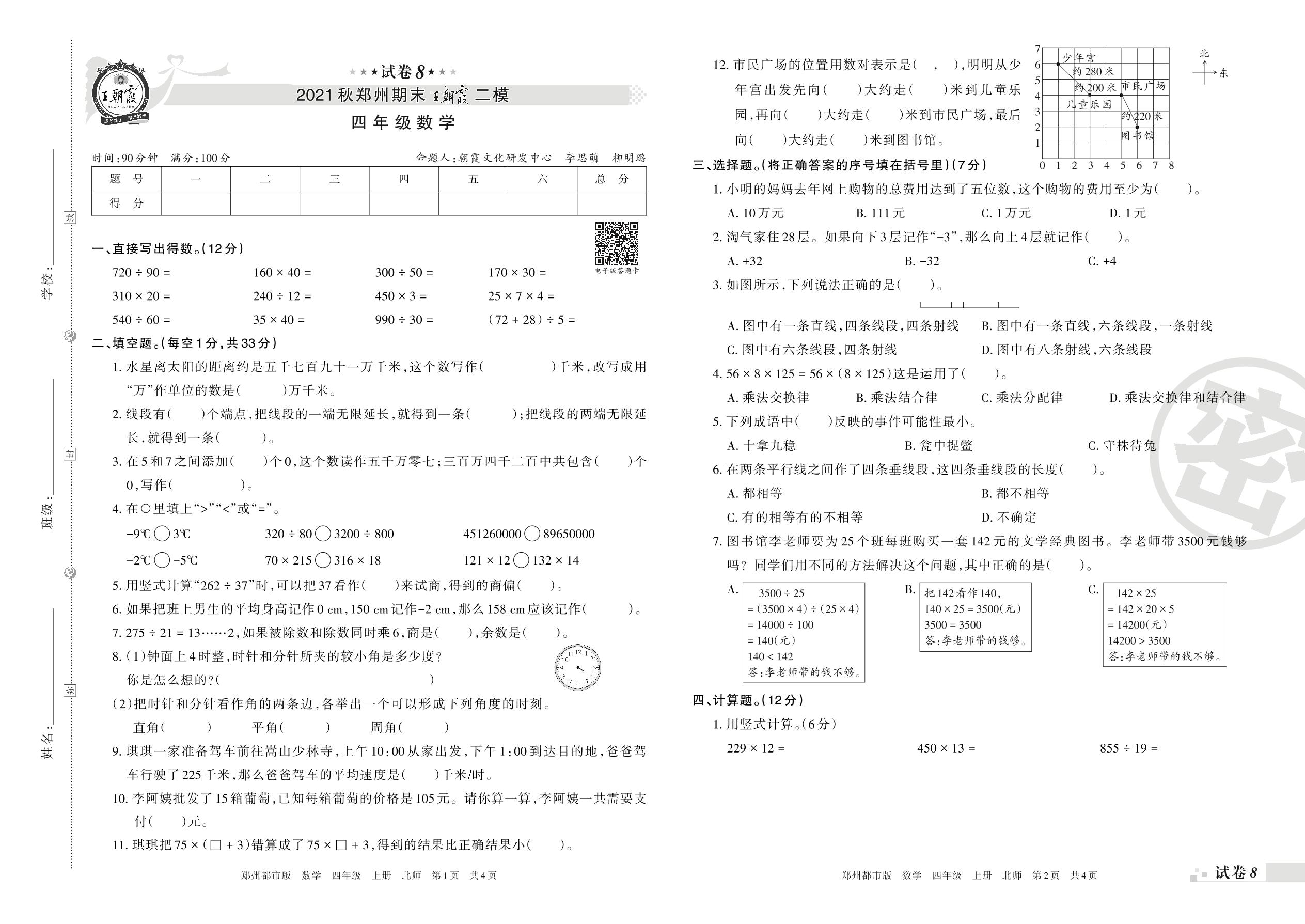 王朝霞期末模拟卷四年级上册数学(北师版)_R211223104351969【8】