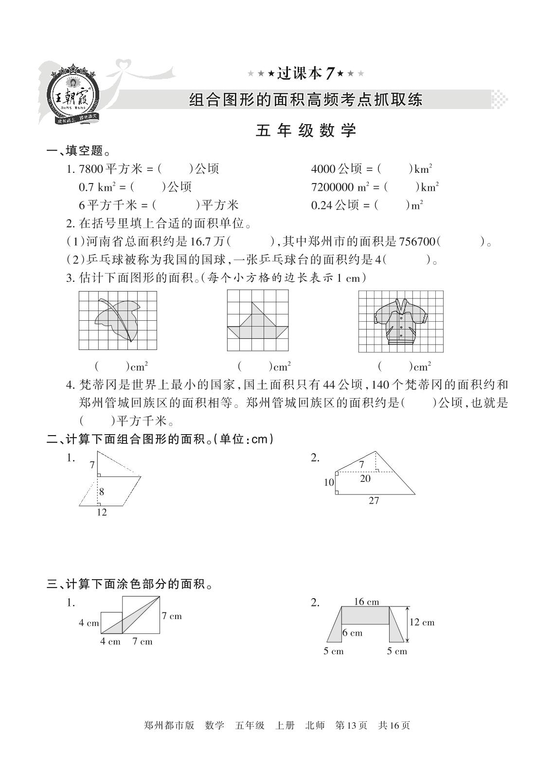 王朝霞期末过课本——组合图形的面积高频考点抓取练五年级上册数学(北师版)_R211223104912694【7】