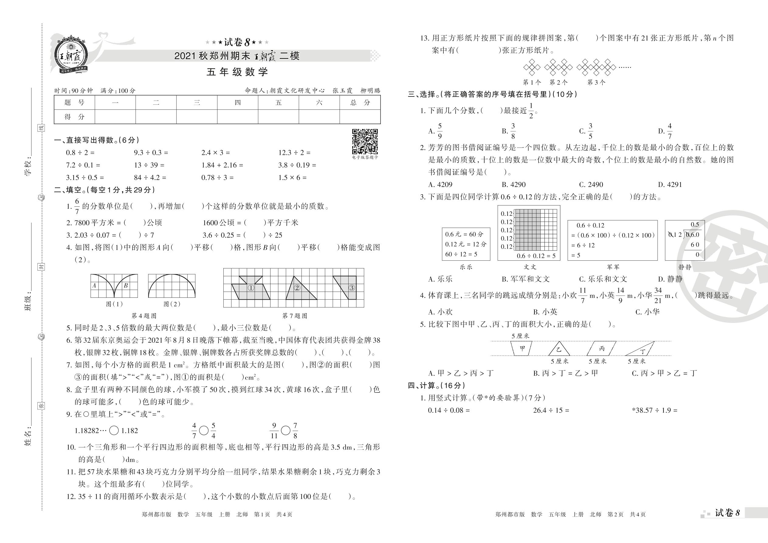 王朝霞期末模拟卷五年级上册数学(北师版)_R211223104913052【8】