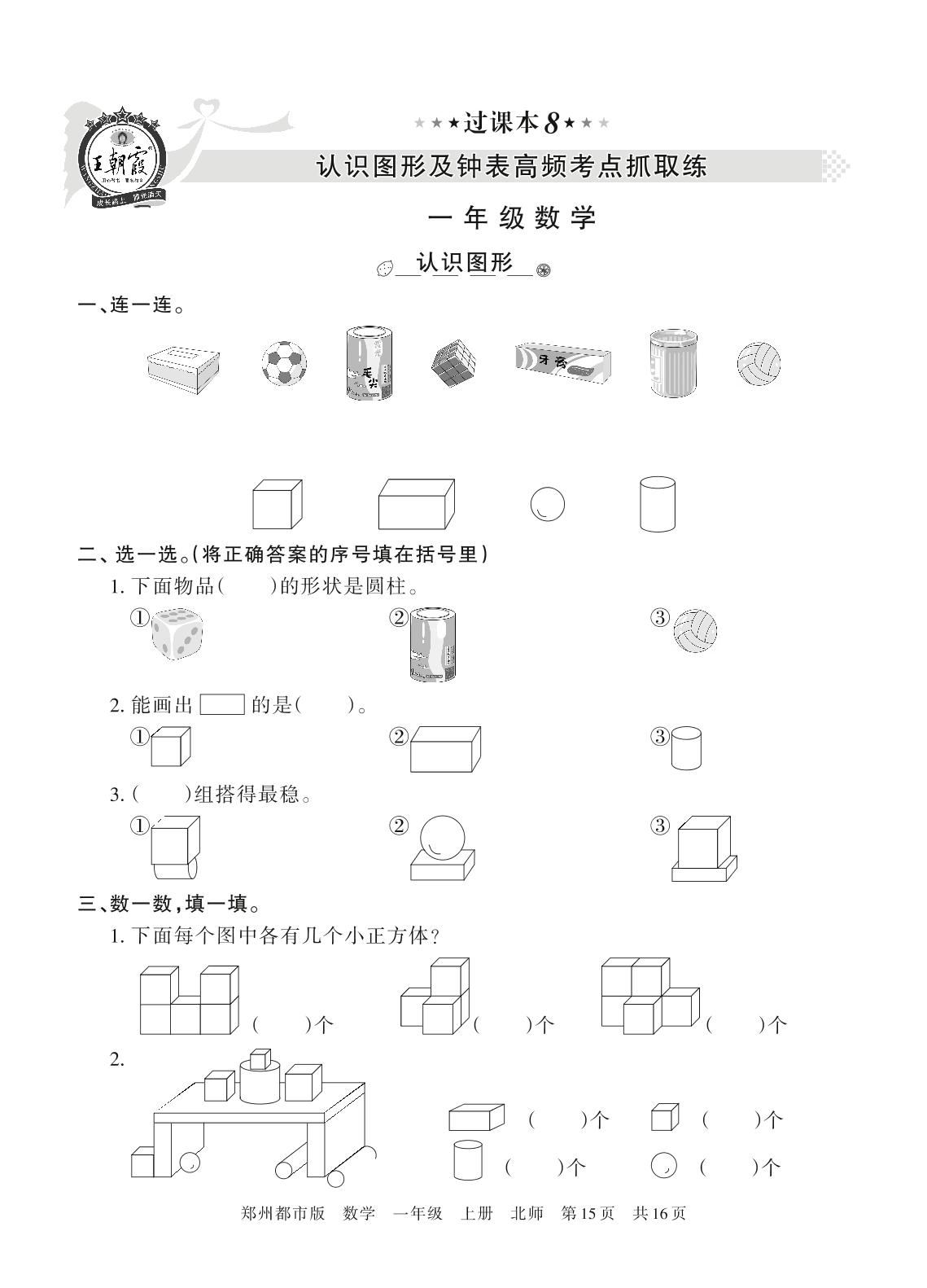 王朝霞期末过课本——认识图形及钟表高频考点抓取练一年级上册数学(北师版)_R211223105354994【8】