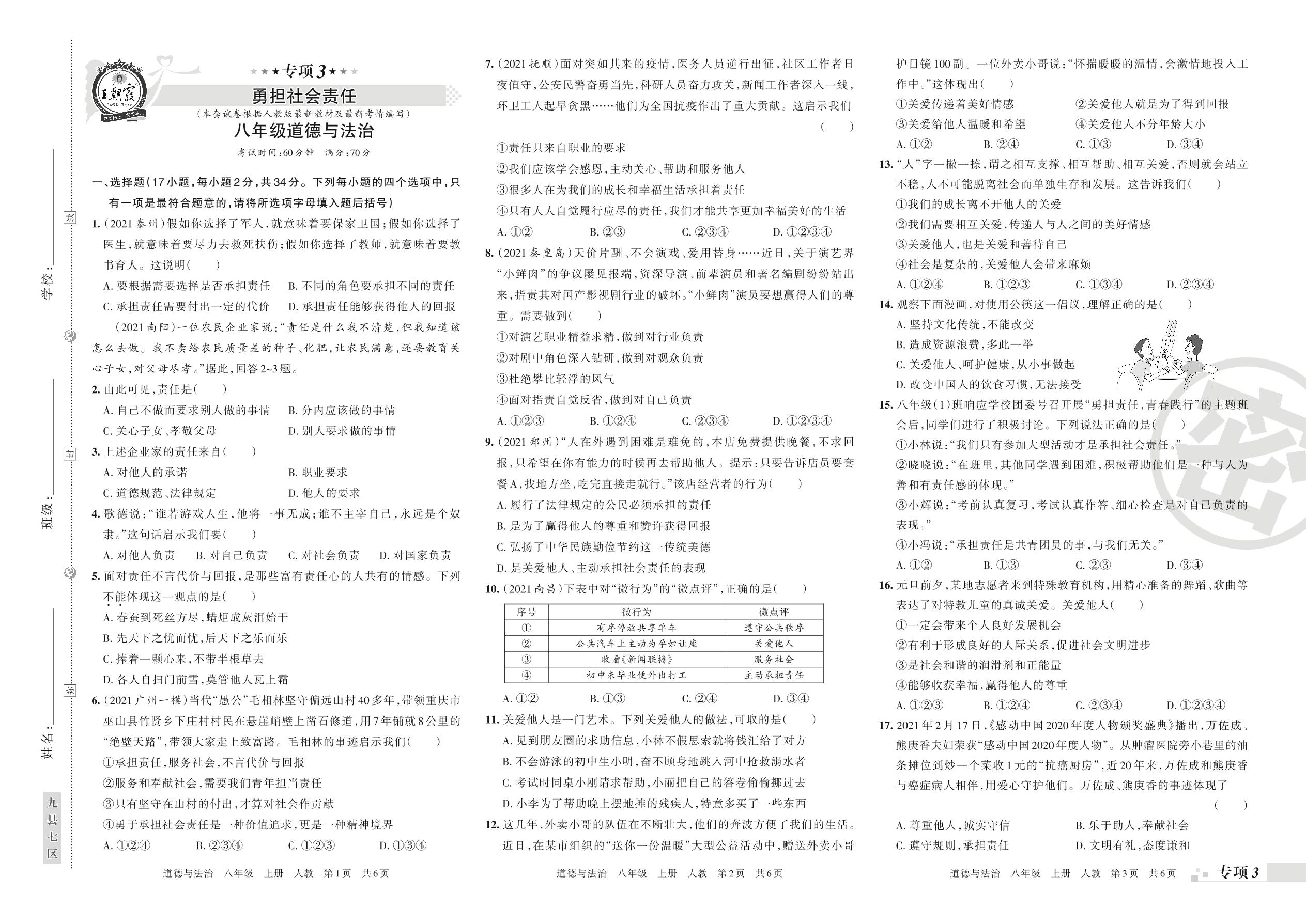 王朝霞期末专项卷——勇担社会责任八年级上册道德与法治(人教版)_R211223110011563【3】