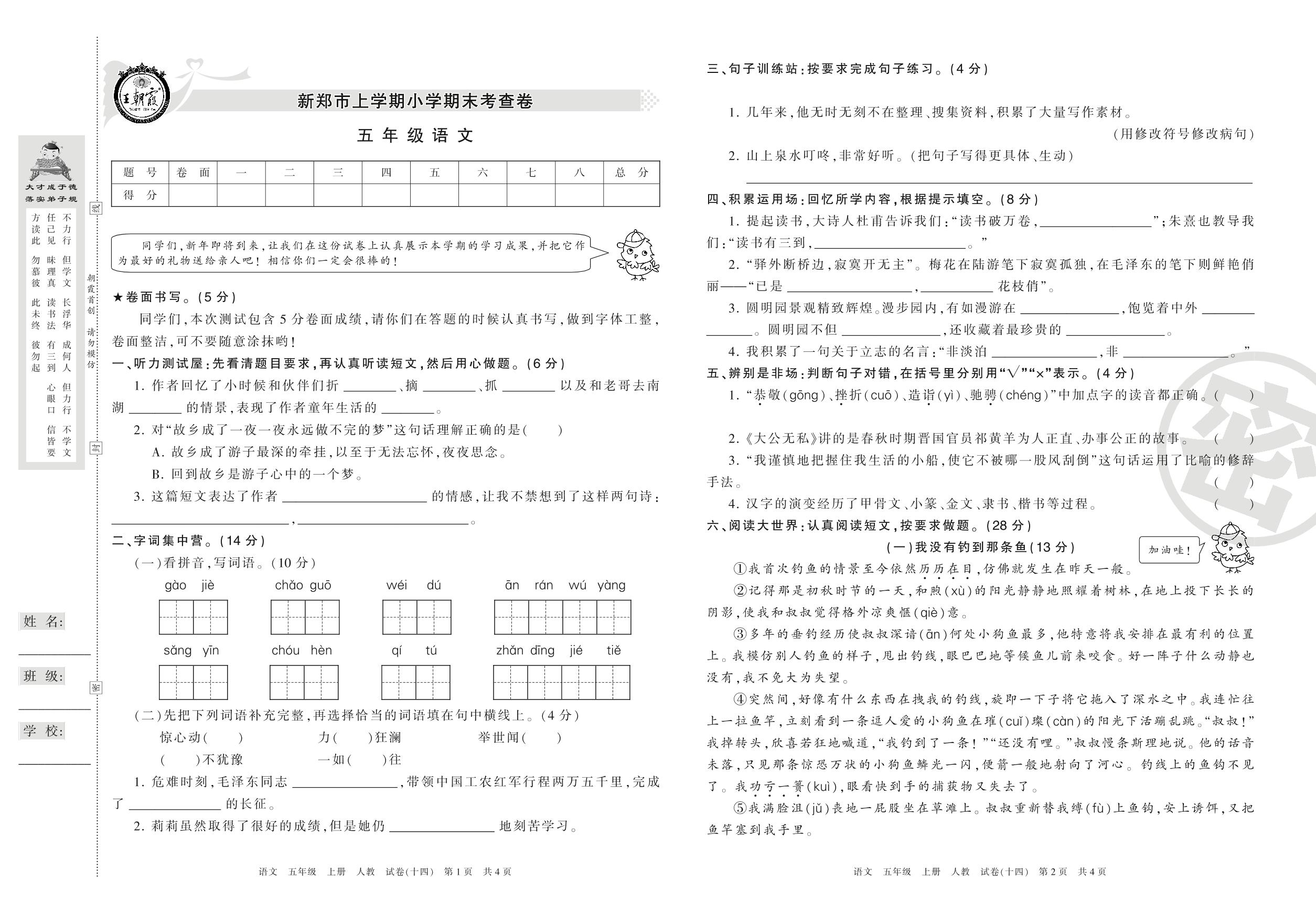 2016-2017学年第一学期新郑市五年级语文试卷(人教版)_R210801213322【14】