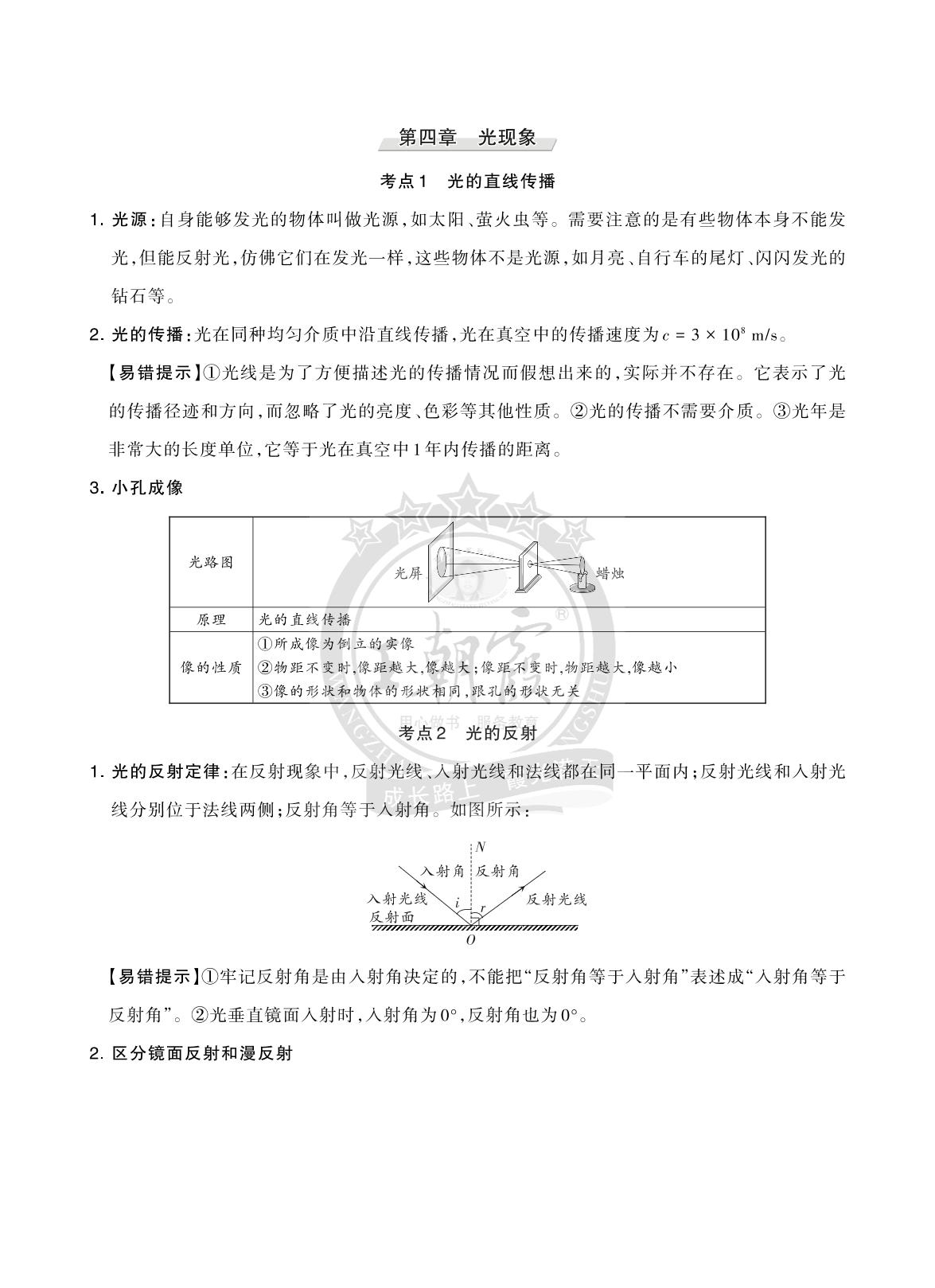 王朝霞期末知识梳理——第四章 光现象八年级上册物理(人教版)【4】