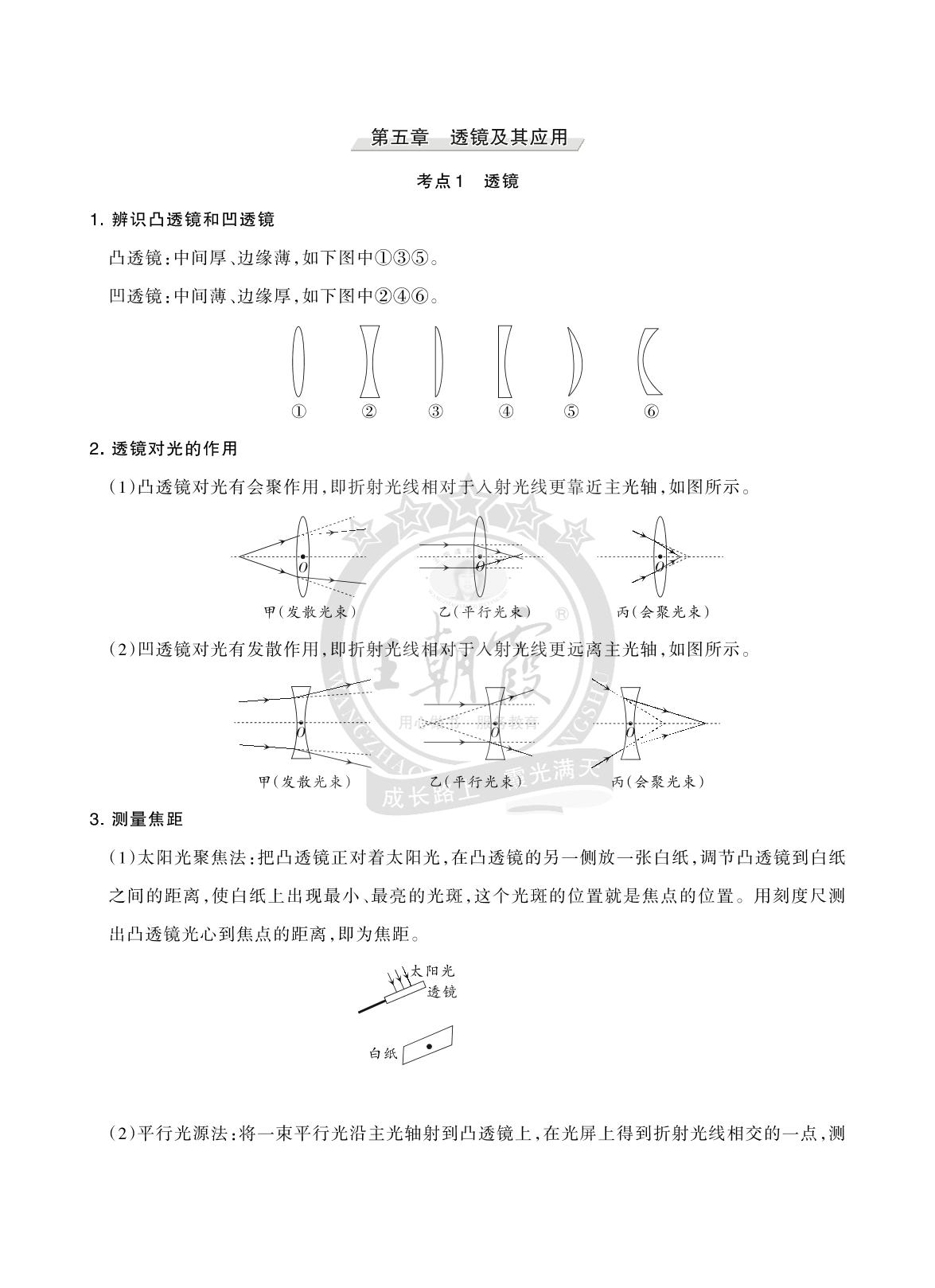 王朝霞期末知识梳理——第五章 透镜及其应用八年级上册物理(人教版)【5】