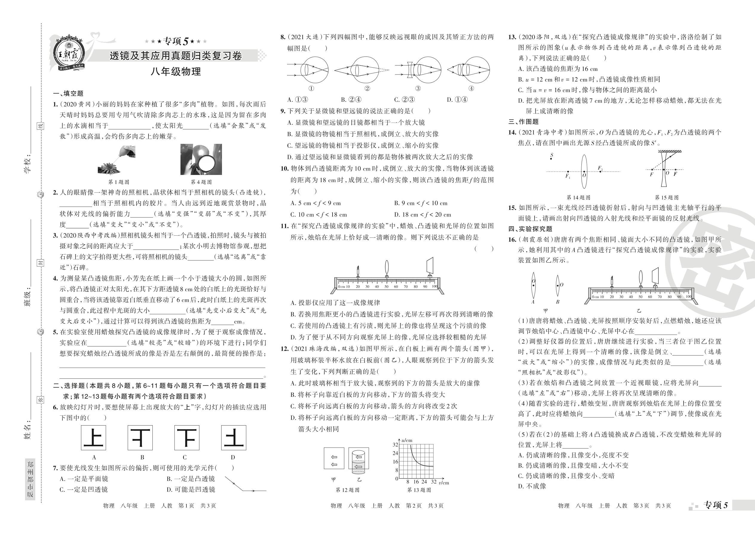 王朝霞期末专项卷——透镜及其应用真题归类复习卷八年级上册物理(人教版)_R211223110032704【5】