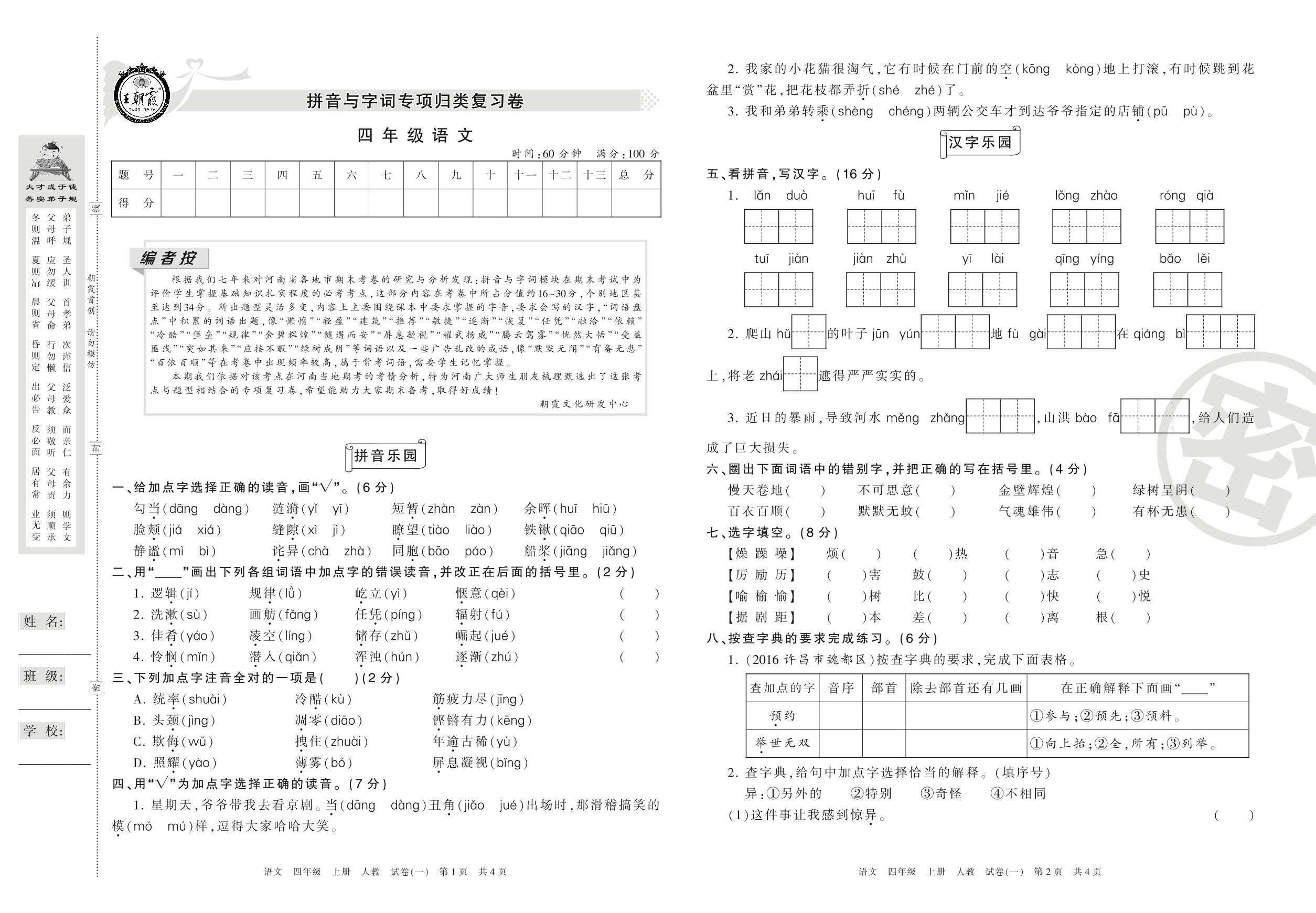 王朝霞期末专项卷四年级上册语文(人教版)_R210801213341【1】