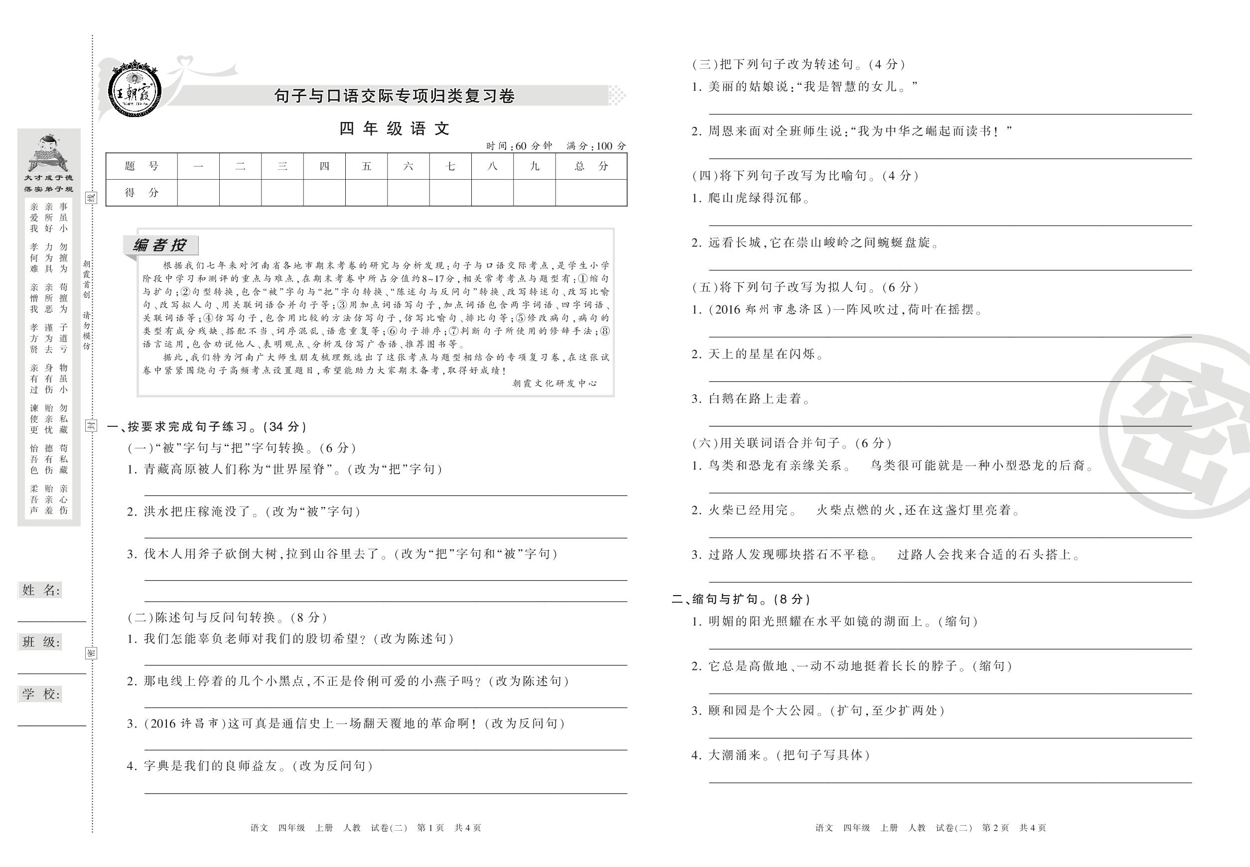 王朝霞期末专项卷四年级上册语文(人教版)_R210801213351【2】