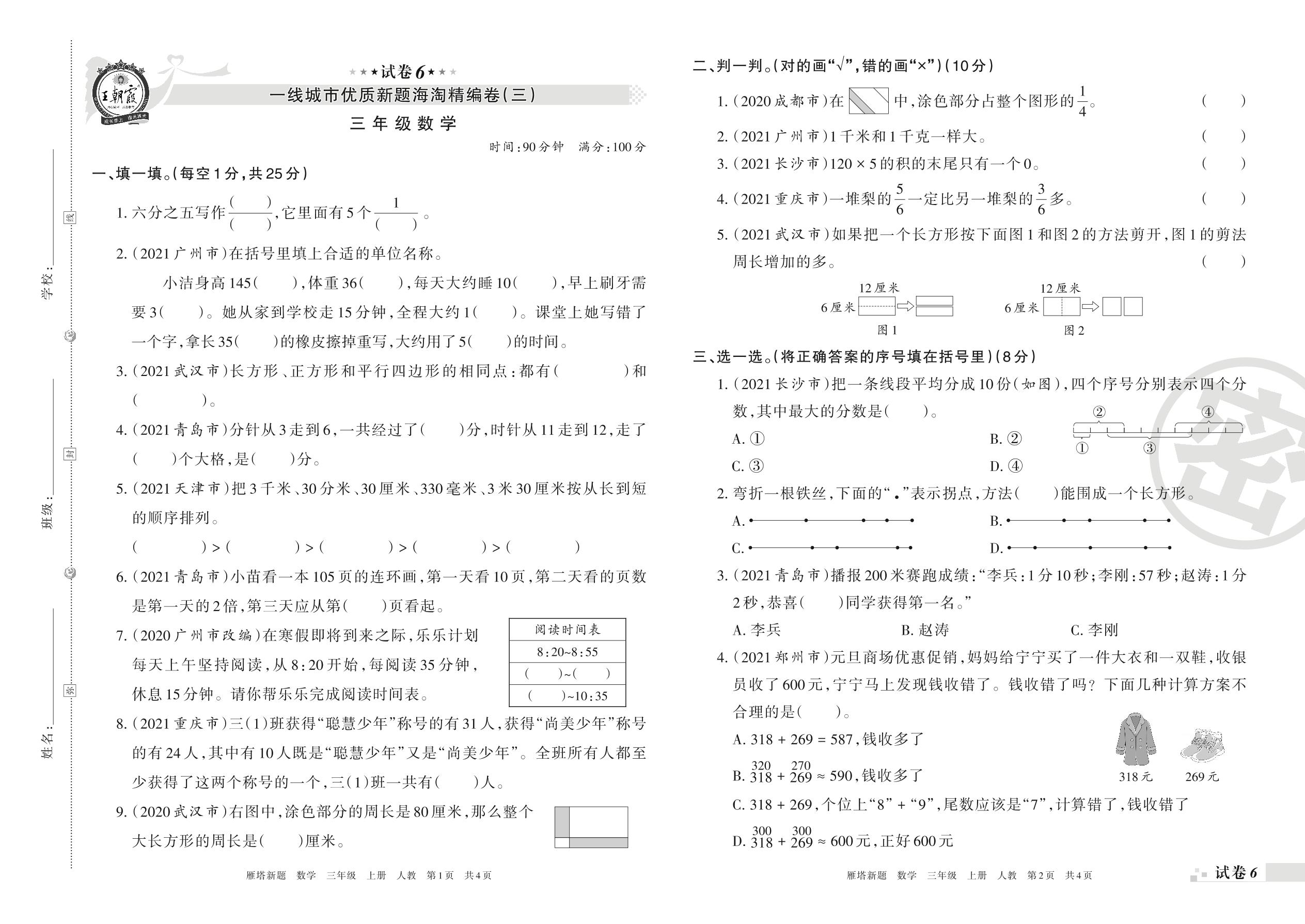 一线城市优质新题海淘精编卷(三)三年级上册数学(人教版)【6】