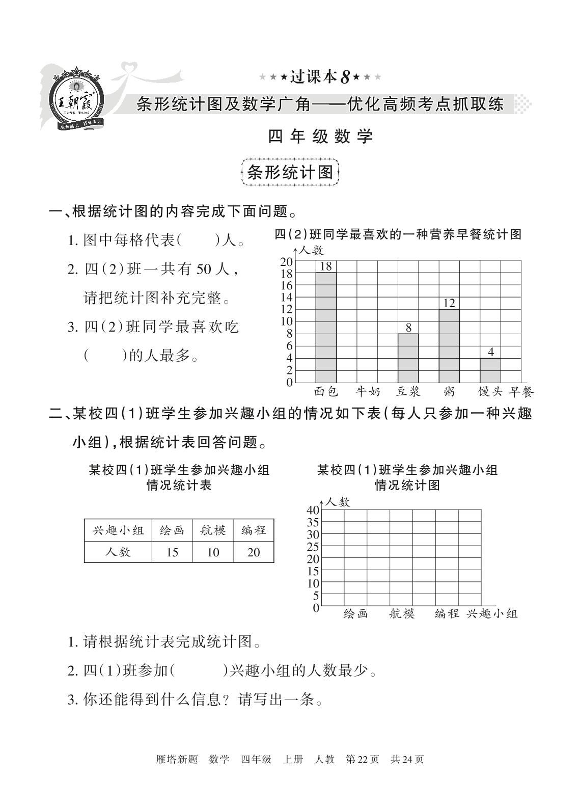 王朝霞期末过课本——条形统计图及数学广角:优化高频考点抓取练四年级上册数学(人教版)_R211223110538607【8】